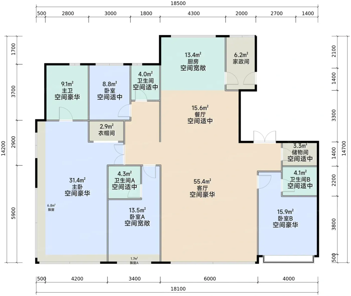 这个项目最妙的是用"双洄游动线"化解了代际冲突。主卧套间与老人房隔着客厅形成动静分区,而约7.8米飘窗带通过灵活隔断,既能变成茶室又能秒切换成聚会吧台。特别想夸夸他们家的玄关设计,1.8米进深收纳墙搭配换鞋卡座,雨天推婴儿车回家再也不用表演"金鸡独立"。
