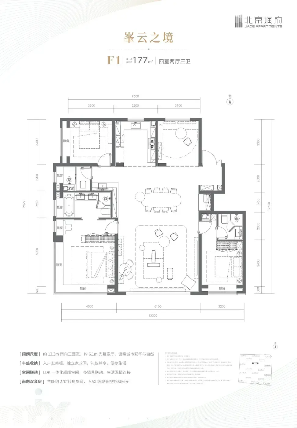 但要注意次卧的"见光死"现象:北向次卧正对连廊,白天需要开灯。177㎡大平层倒是把动静分区玩明白了,主卧套间和儿童房隔着客厅对角线分布,深夜加班不怕吵醒娃。不过交房前要忍受周边"工地交响乐",商业配套得等2026年才能兑现。