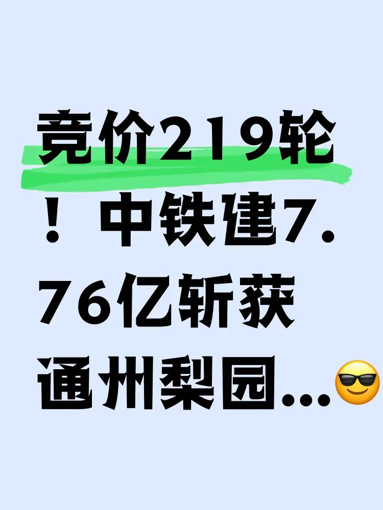 当竞拍槌第219次落下时,通州梨园镇FZX-0303-6007地块终于名花有主!这场牵动京城地产圈的土拍大战,四家房企贴身肉搏足足1.5小时,最终中铁建以7.76亿元将这块1.27万方的黄金地块收入囊中。距离地铁梨园站仅500米,家门口就是史家小学分校和新华医院,更令人期待的是在建的万象汇综合体即将升级区域商业版图。