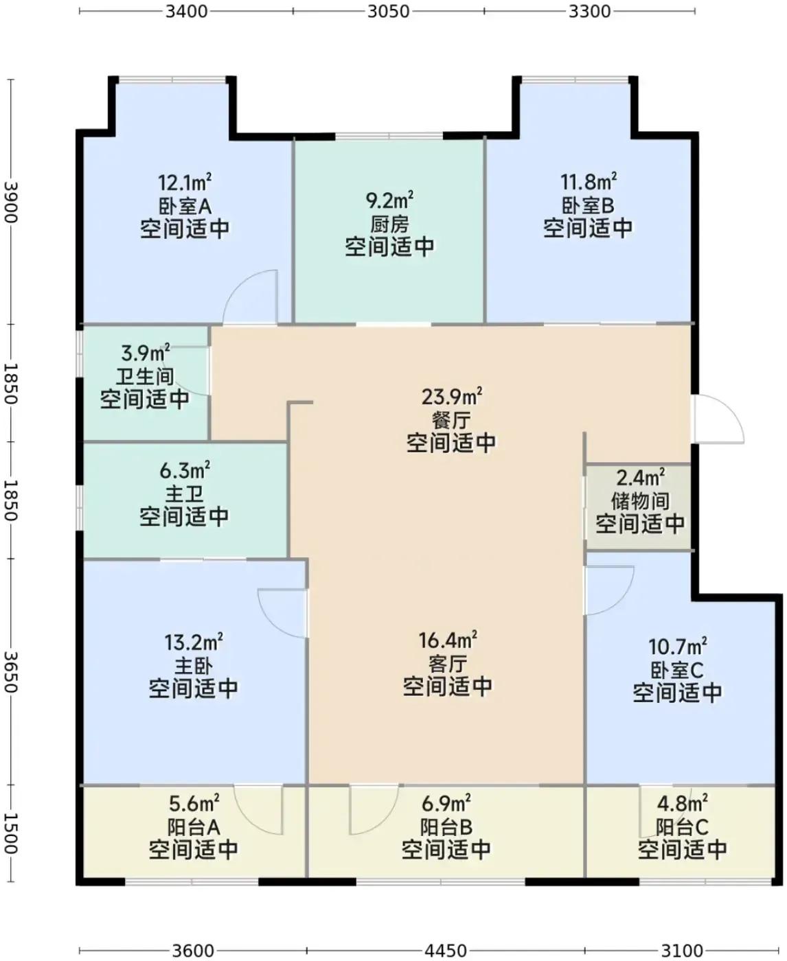③213㎡端户标配三卫双衣帽间,主卧套房比某些酒店行政房还大,实测6人家庭同住私密性不打折