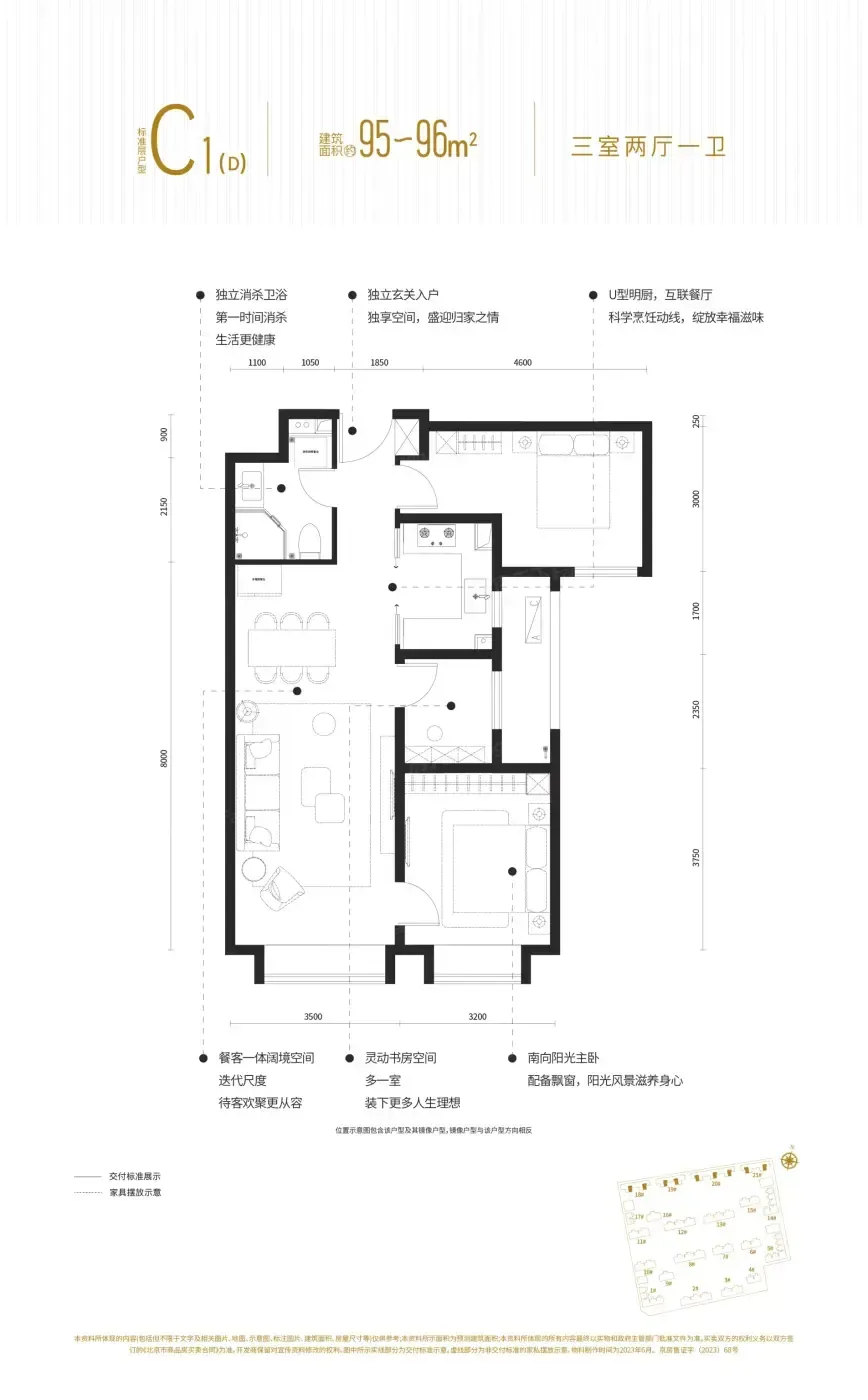 2️⃣95㎡三居室玩起空间折叠术:餐厅和客厅共享3.6米开间,不过北向次卧采光全靠内凹飘窗