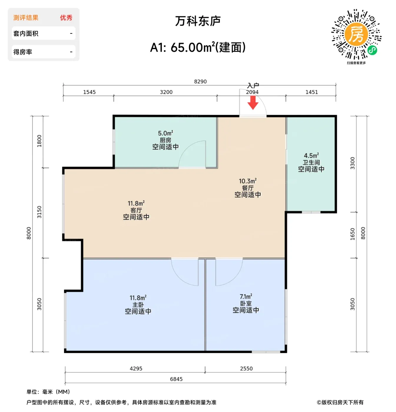 1⃣️小户型附赠玄关柜+家政间:65㎡两居自带入户收纳系统,餐边柜预装直饮水点位,比某些90平户型更讲究生活动线