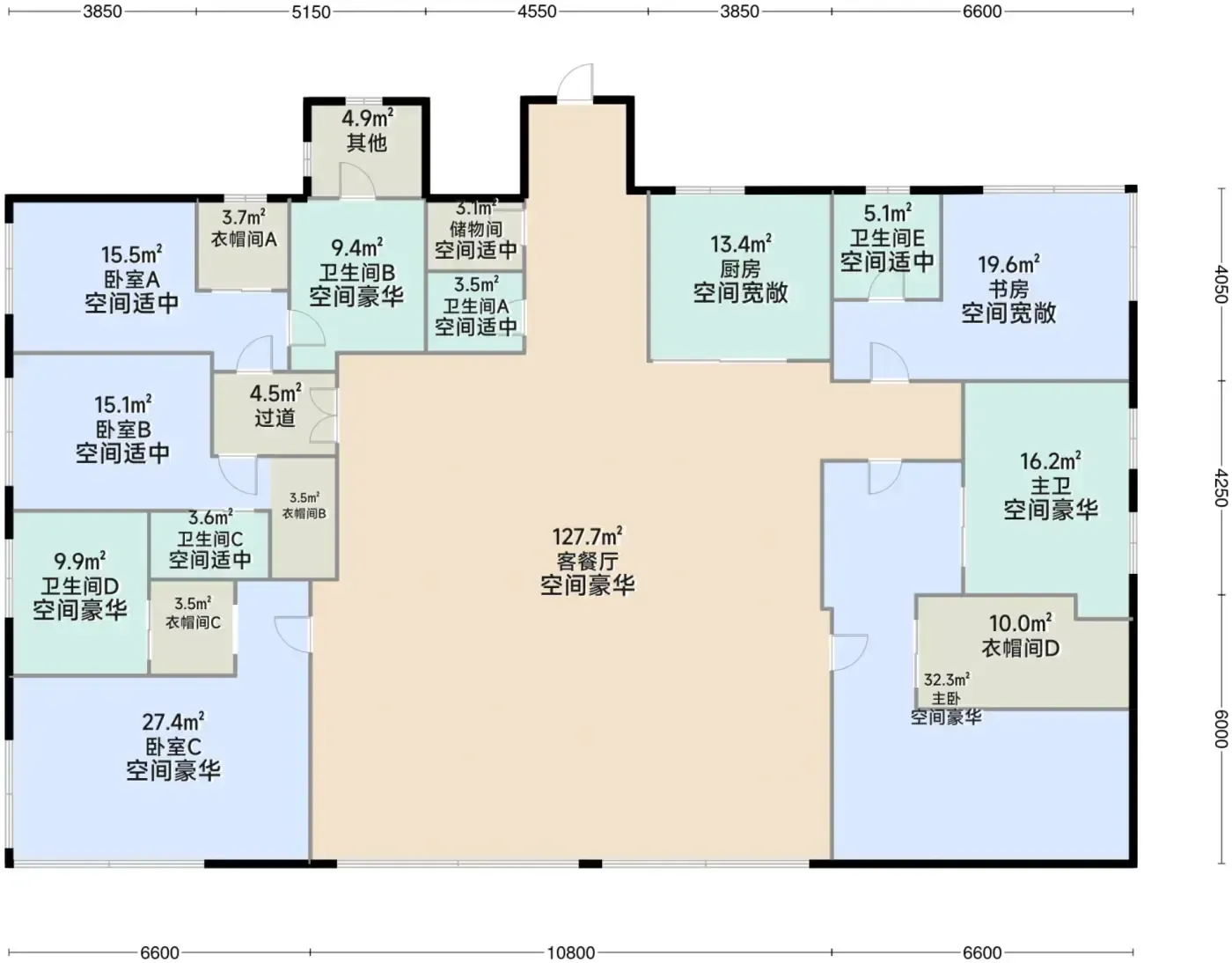 ③那个传说中带6卫的410㎡户型,光洗手台就能玩滑板