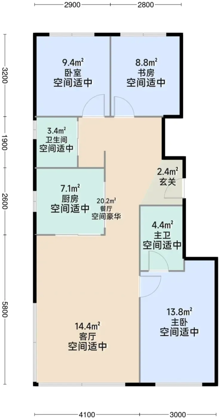 115㎡户型主卧偷出3.8米飘窗 做成双人咖啡角不香吗?次卫的钻石切割设计是双刃剑 洗浴动线需要适应期