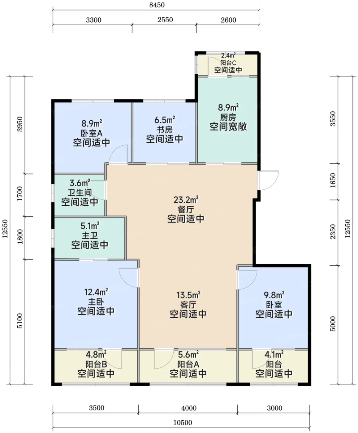 →预算800万级选105㎡三居,南北通透比同面积段多出半间书房