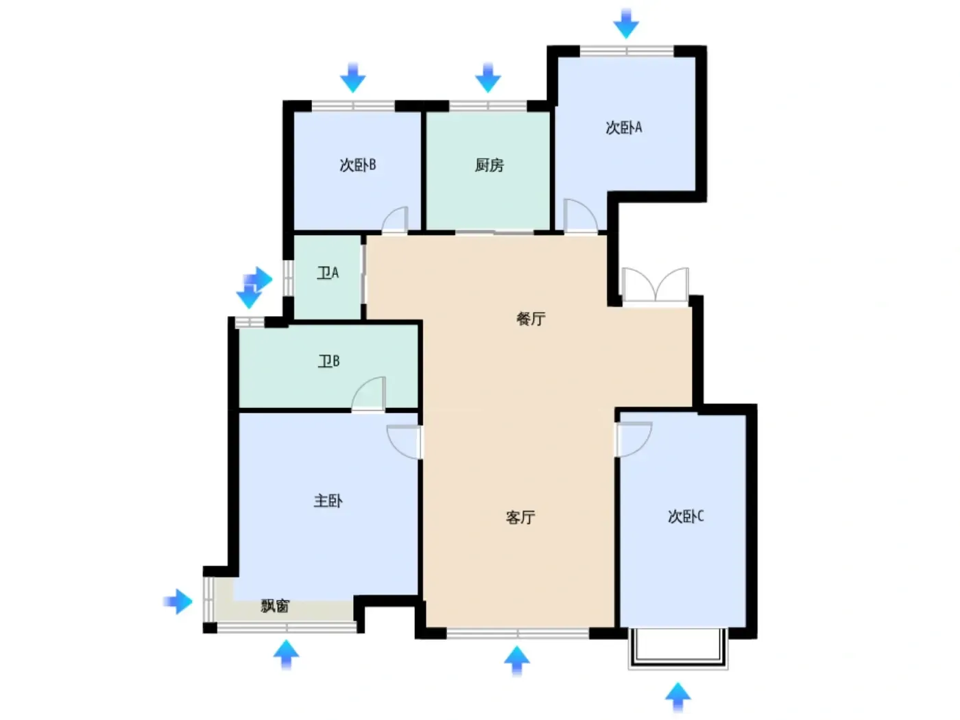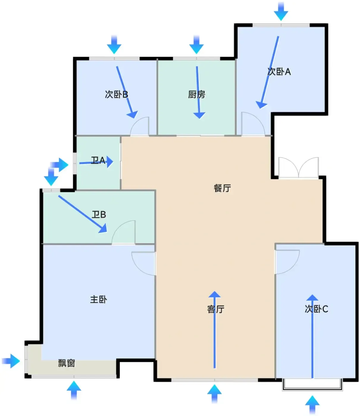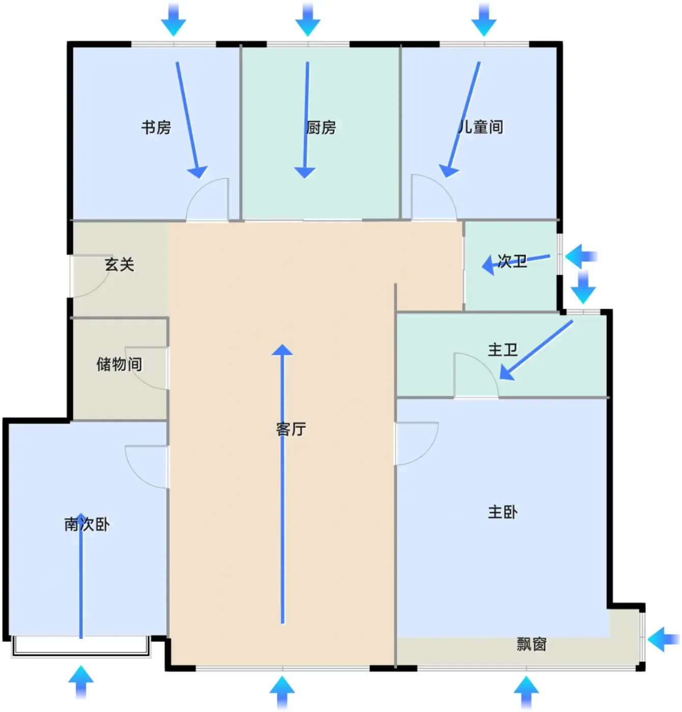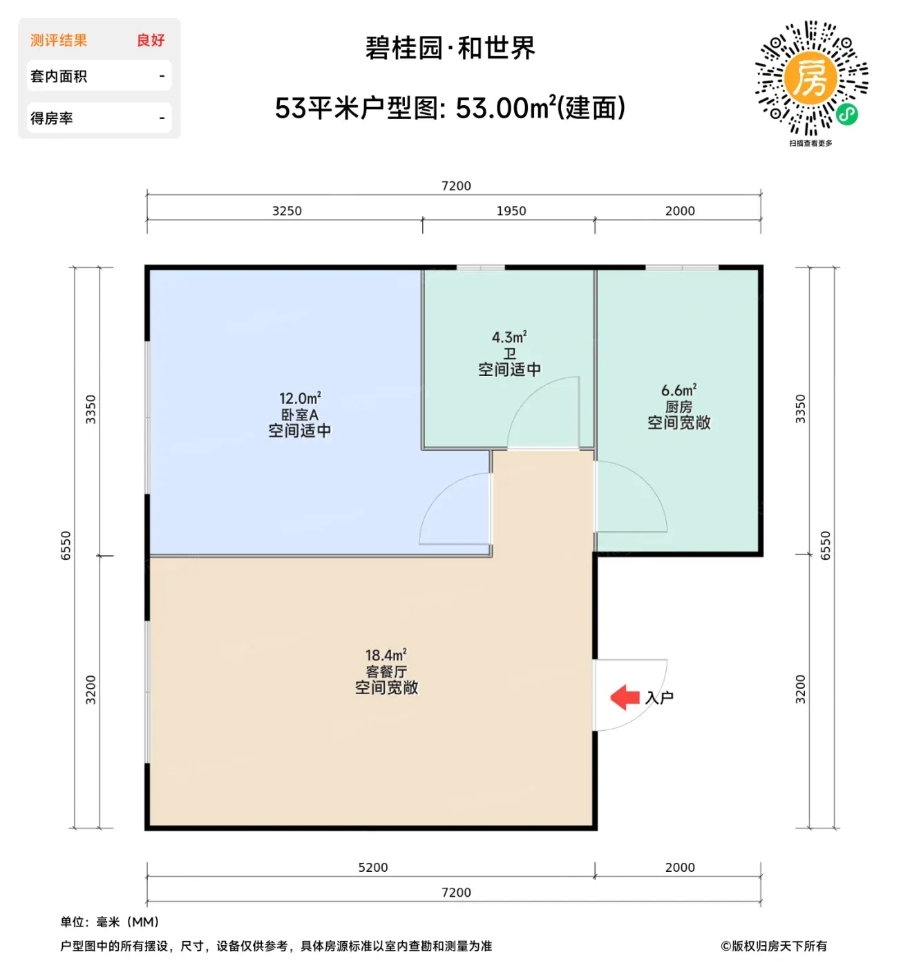 1.偷面积天花板:53㎡户型竟做到南北双飘窗!实测飘窗深60cm,改书桌或咖啡角后还能留足过道空间,比常规户型多出3㎡实用面积。