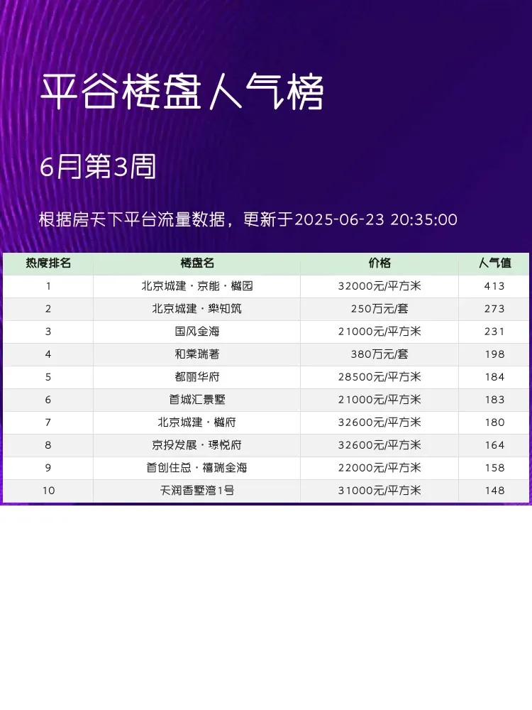 买房不踩坑💡这份平谷人气楼盘榜单必须收藏!当前市场下,配套成熟度+户型实用性+价格优势才是王道✨榜单根据交通、教育、户型等核心维度综合测评,帮你快速锁定优质盘~