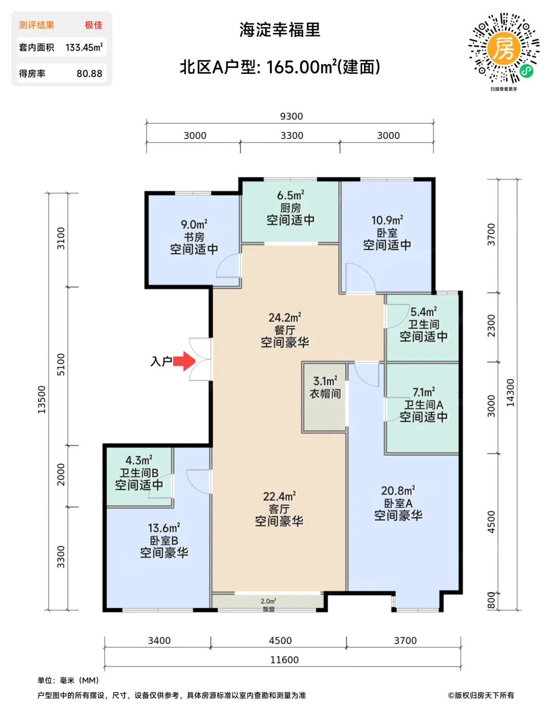 1.「偷面积」玄学?实测93%空间利用率实锤:165㎡户型在婴儿床位置预留电源,主卧飘窗自带天然咖啡吧台