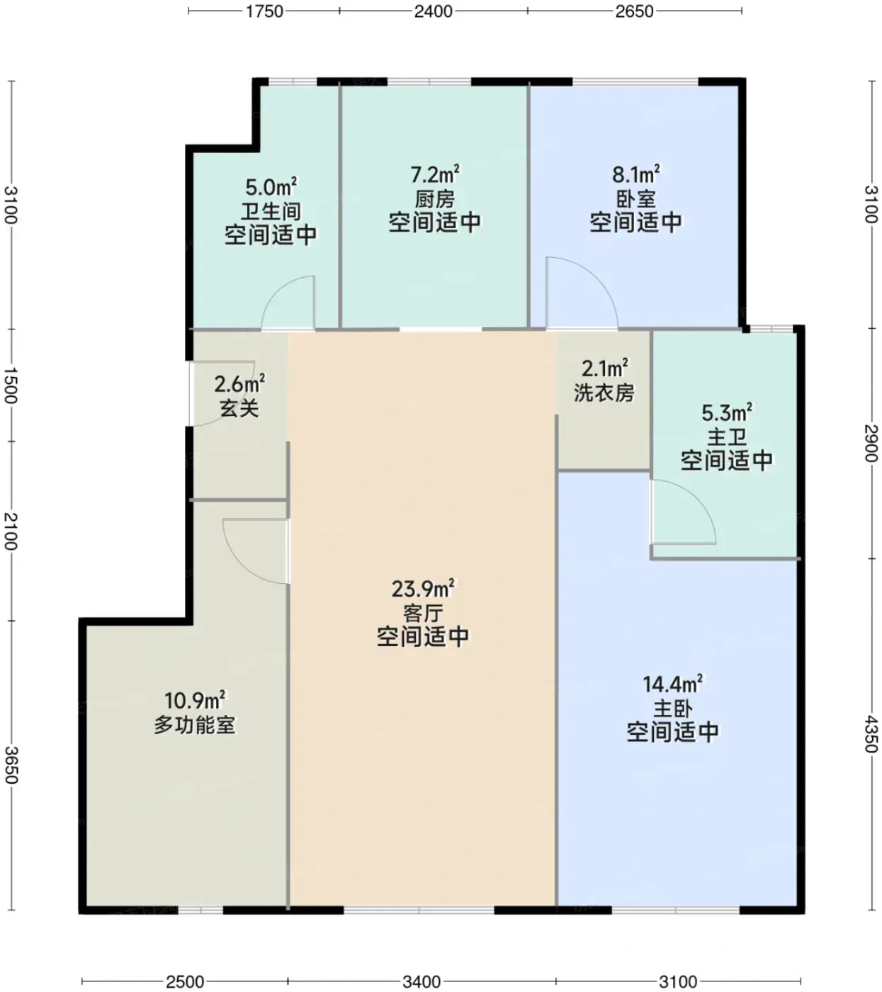 127平四居的「四叶草」布局有点惊艳,四个房间互不干扰。但实测样板间发现,厨房操作动线确实存在转角过多的问题,建议后期装修时优化台面布局。