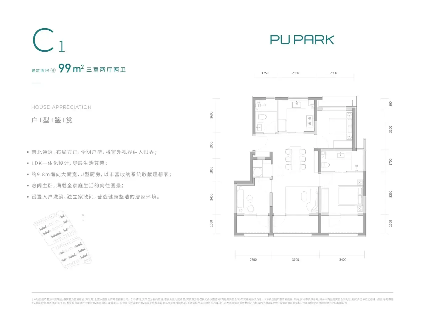 2️⃣洋房组团堪称空间魔术师,99㎡偷出全明三居,125㎡塞下四室双卫,得房率77%吊打竞品