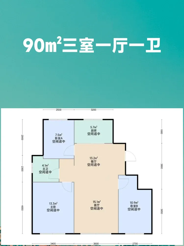 【90㎡三室一厅一卫】
