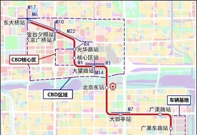 🚇北京地铁28号线(原CBD线),工程线路起于朝阳区工体南路路口东大桥站,终点为朝阳区广渠东路站,线路沿朝阳门外大街、针织路、北京东站、茂兴西街、广渠路敷设,全长8.1公里,共设9座车站,自北向南分别为:东大桥站、京广桥站、光华路站、核心区站、大望路站、北京东站、大郊亭站、广渠路站、广渠东路站,其中5座换乘站。计划2029年通车。