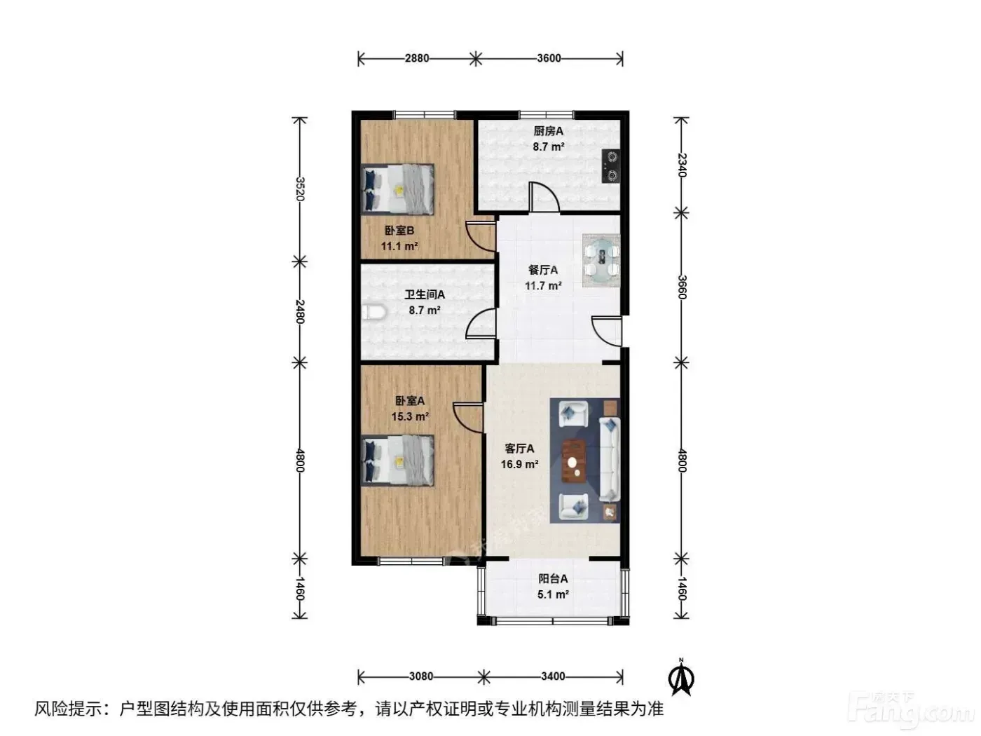 ✅ 建面97㎡的2室1厅,主卧朝南带飘窗,次卧北向但采光无敌(自家实测冬天都有阳光!)