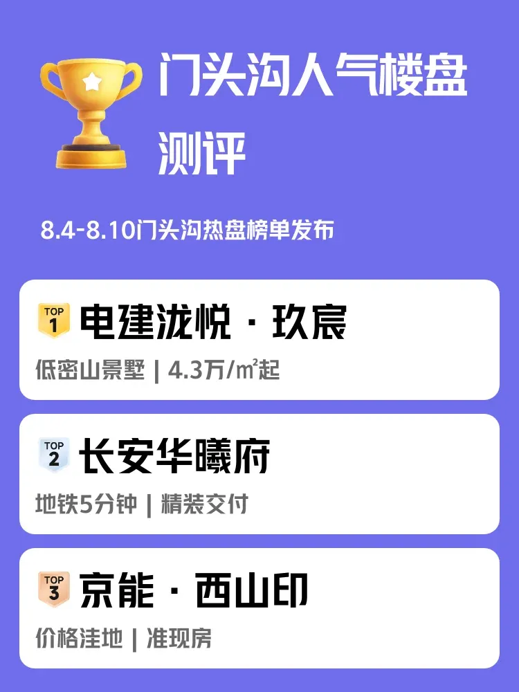 上周(8.4-8.10)门头沟新城商圈又成焦点🔥,三个楼盘霸榜前3名超过2000人踩盘!每天通勤3小时VS下楼就是地铁站,到底哪个更香?快来围观真实测评👇