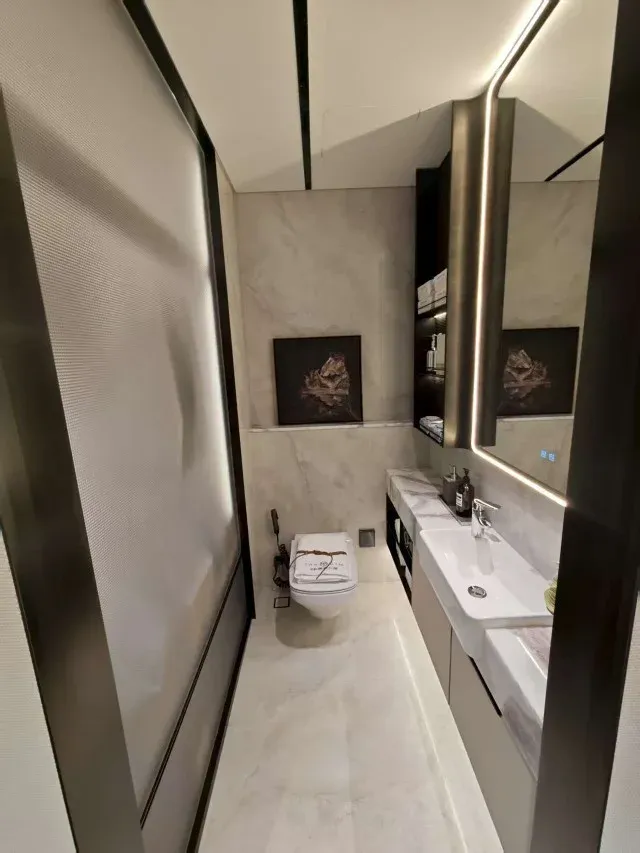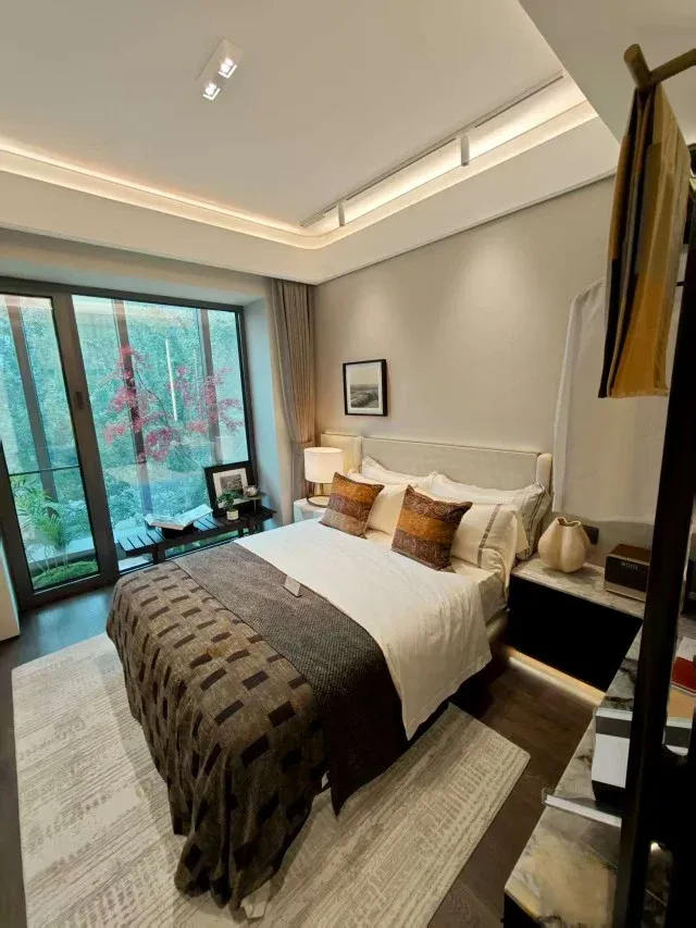 三间南向卧室,让阳光成为生活的常客。主卧套房堪称私享秘境,3.8米面宽带来开阔格局,270°环幕飘窗将窗外景致尽收眼底,独立卫浴搭配双台盆设计,在细节处彰显品质生活。书房与主卧的灵活衔接,既是工作办公的静谧角落,也能化作孩子的学习天地,满足家庭成长的多样需求。