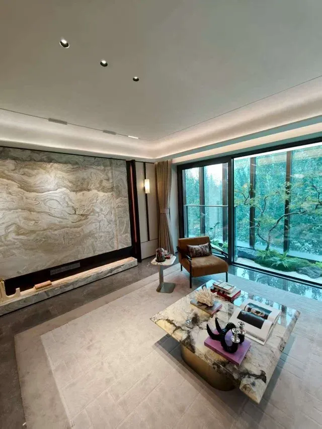 约80㎡的餐客一体大横厅,是家庭生活的核心场域。5米轩敞面宽搭配整面落地窗,将阳光与清风尽情拥入怀中。亲友小聚时,客厅是畅谈欢笑的社交主场;午后闲暇,窝在沙发上看书品茶,光影流转间满是惬意。