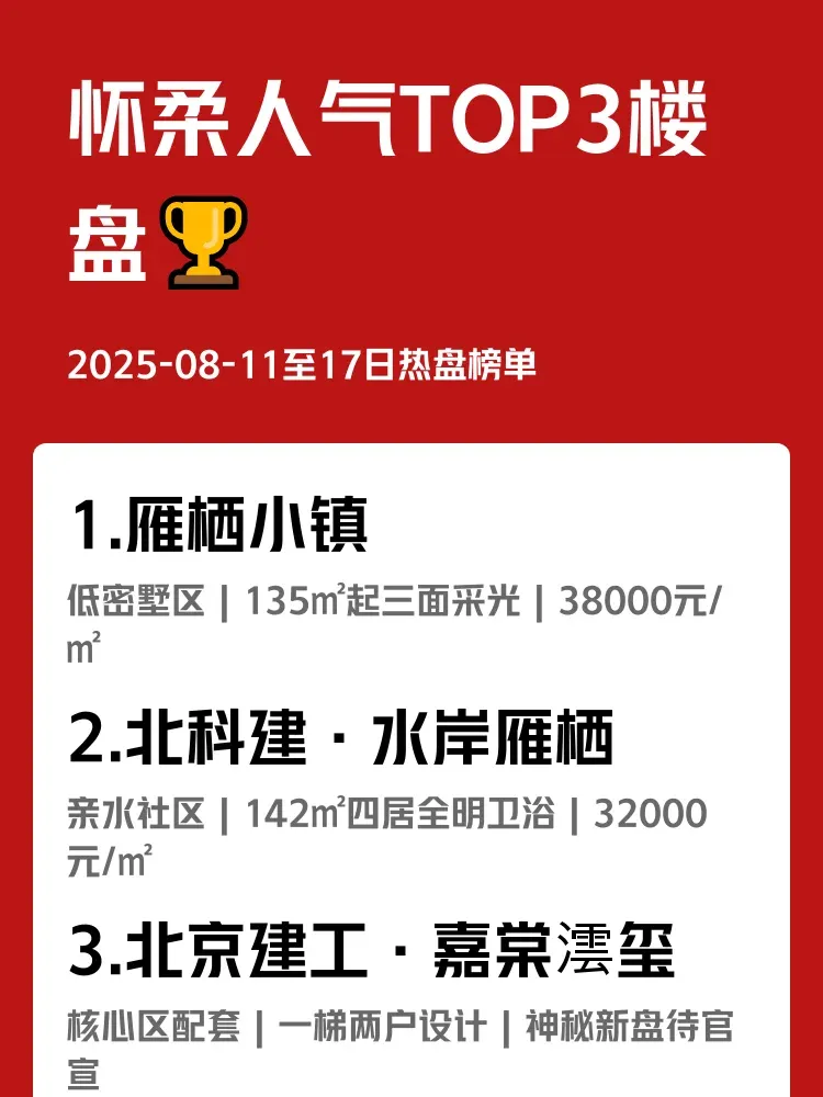上周末在怀柔看房的朋友举个手👋!2025-08-11至17日区域人气榜已出炉,日均2.3组到访量背后藏着多少惊喜?早高峰通勤3小时🆚下班步行逛湿地公园,懂生活的北漂都在这扎堆!