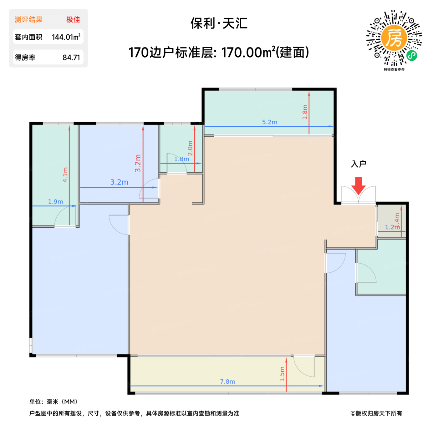 作为朝阳东坝首个TOD项目,保利·天汇确实把空间魔法玩明白了。170㎡做到3室2厅3卫,南向面宽居然有10.8米!朋友摸着可以打羽毛的餐客厅直呼离谱。但更让我震惊的是北向次卧——赠送设备平台改造的飘窗,愣是偷出0.8㎡使用面积。这种设计在现房市场真的可以过审?