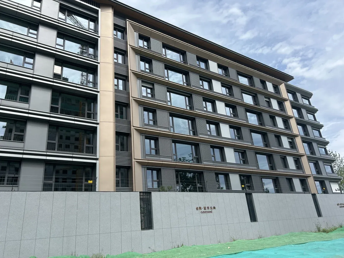 今天顶着大太阳来实地探访金隅望京云尚啦!🔥 项目位于来广营北路东侧,现场看到5栋洋房已封顶,外立面采用浅色石材+玻璃幕墙组合,随手拍了几张工地实拍图(见图3-5)👷♂️。售楼处设在金隅南湖公园内,沙盘区展示了约30%绿化率的园林设计,整体走的是低密改善路线,容积率仅2.22,在五至六环区域比较难得~
