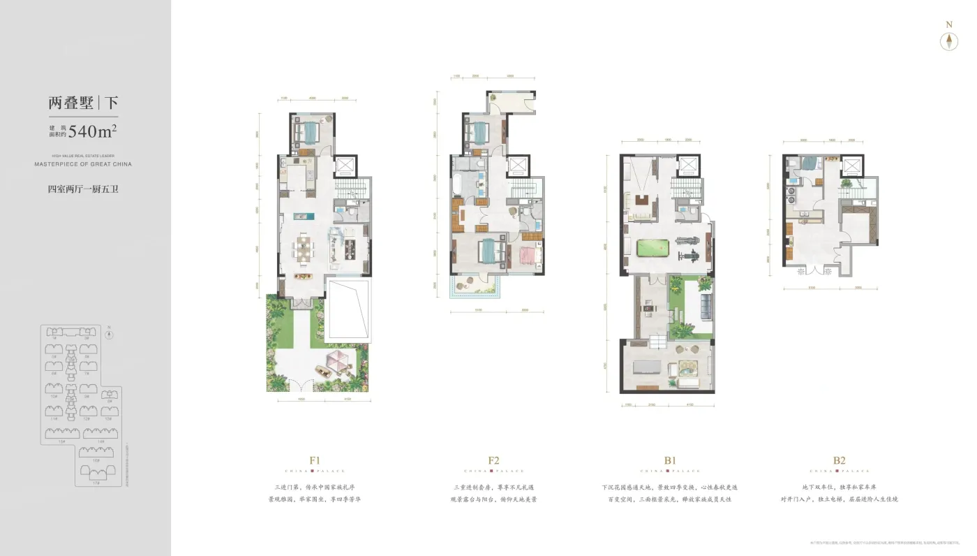 但要提醒:540㎡户型得房率仅78%,下沉庭院后期维护成本高。实测样板间主卫门距床仅70cm,建议现场体验动线。