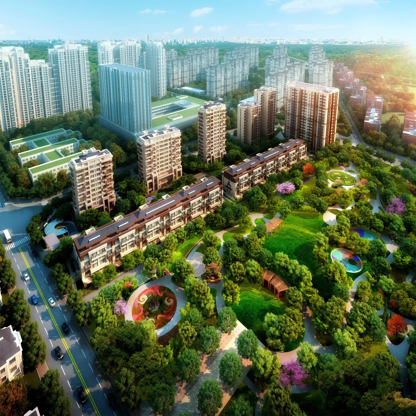 朝阳东坝改善盘「富兴首府」最新效果图释出!🏙️ 项目由北京兴园置业开发,主推花园洋房+叠拼别墅,容积率仅2.5的纯低密社区🌳。新曝光的景观效果图显示,30.11%绿化率搭配水系园林,生态感拉满💦。作为五至六环稀缺地铁沿线盘,82000元/㎡的定价瞄准改善客群,停车位配比洋房1:1、叠拼1:1.2🚗。