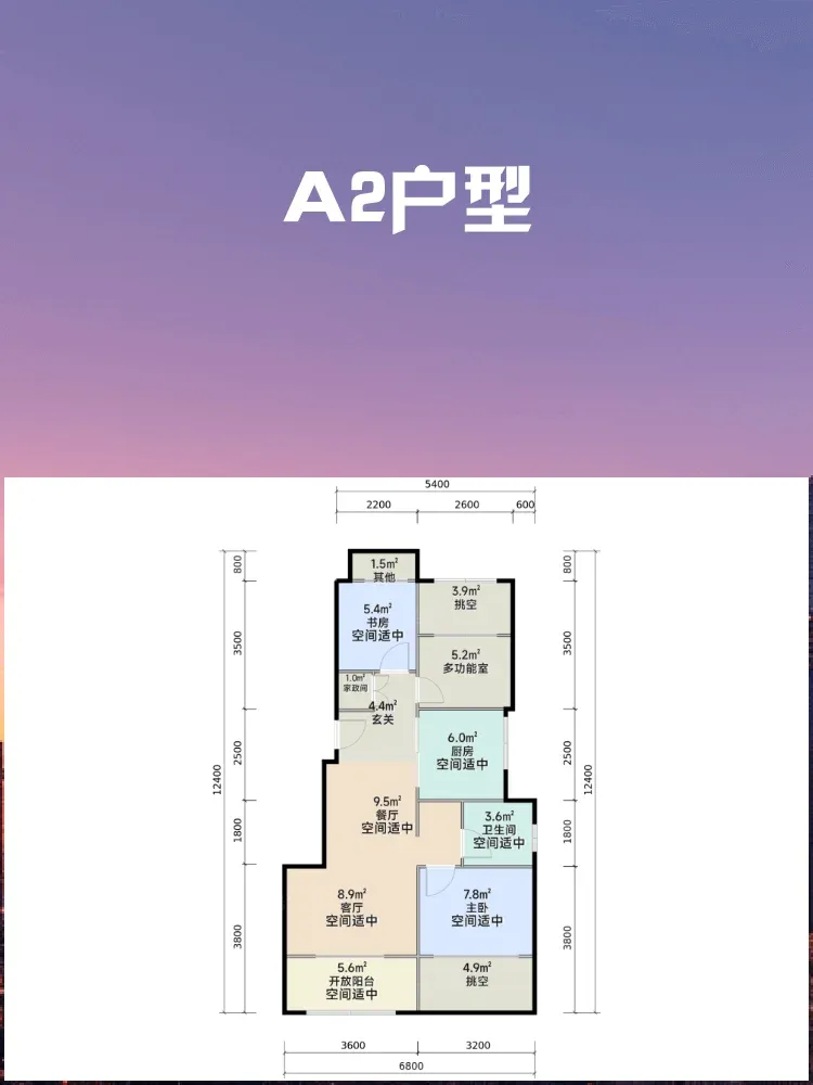 ◾️空间魔术师:5.4米南向面宽实现三居格局,主卧3.3米开间配飘窗,小户型也有舒适尺度