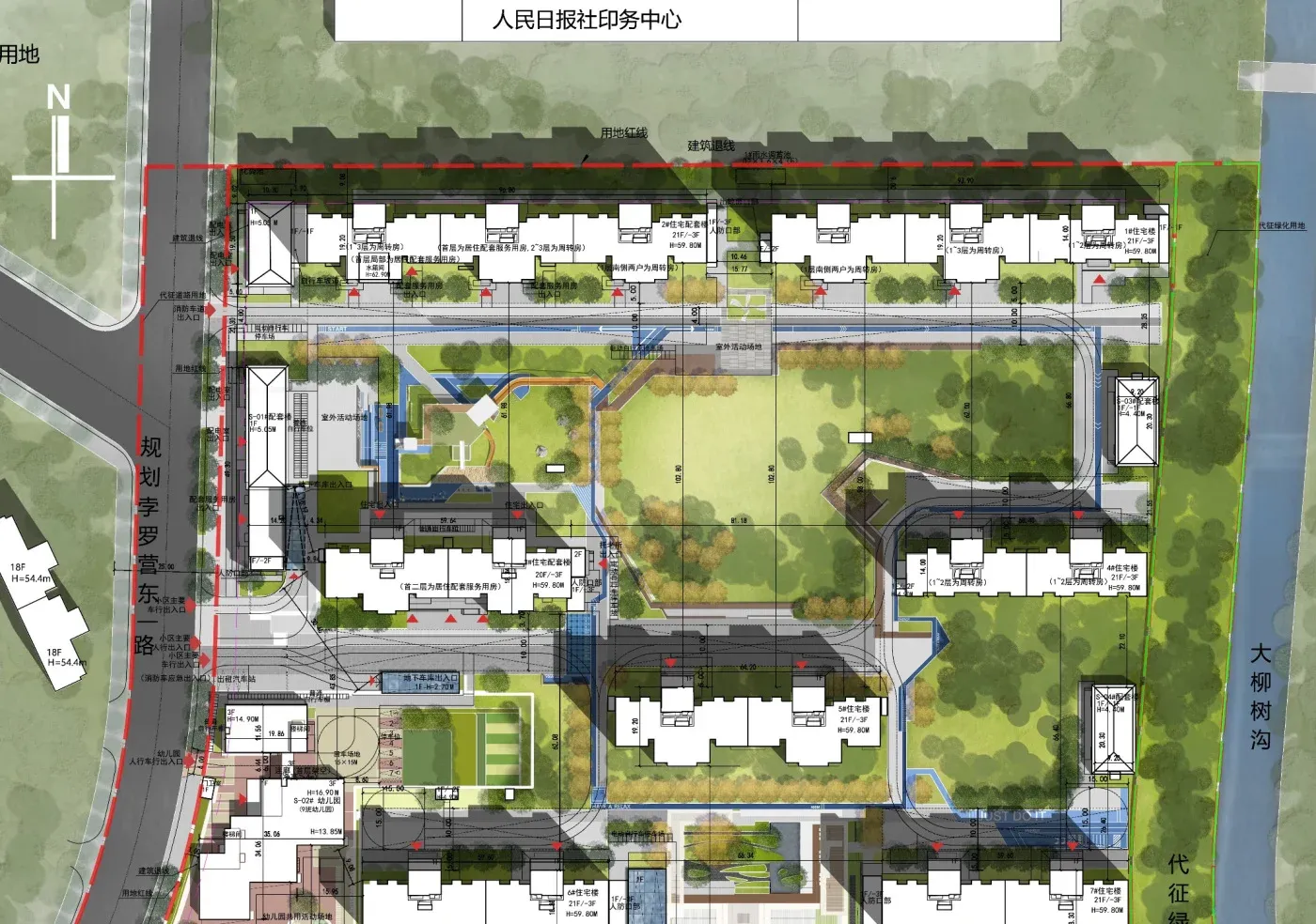 规划用地性质:二类居住用地、代征道路、代征绿地。