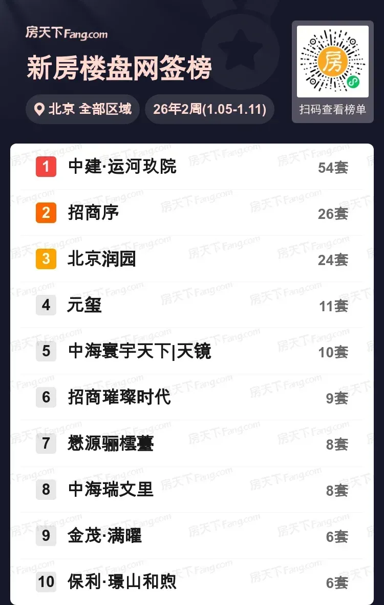 上周京城楼市暗涌流动,运河畔的中建·运河玖院以54套网签量强势问鼎,单价6.6万的副中心住宅引发市场关注。城南亦庄的招商序以26套成交紧追其后,7.2万单价展现高端住宅吸引力。值得关注的是,石景山古城板块三盘齐发,元玺/中海寰宇天下/保利·璟山和煦形成组团攻势。中央别墅区润园24套别墅成交释放改善需求信号,顺义懋源骊橒薹8.7万高单价项目逆市突围。从区域格局看,通州、大兴延续热度,石景山多盘开花形成新增长极。预计随着改善型需求释放,高端住宅与优质地段项目将继续主导市场。