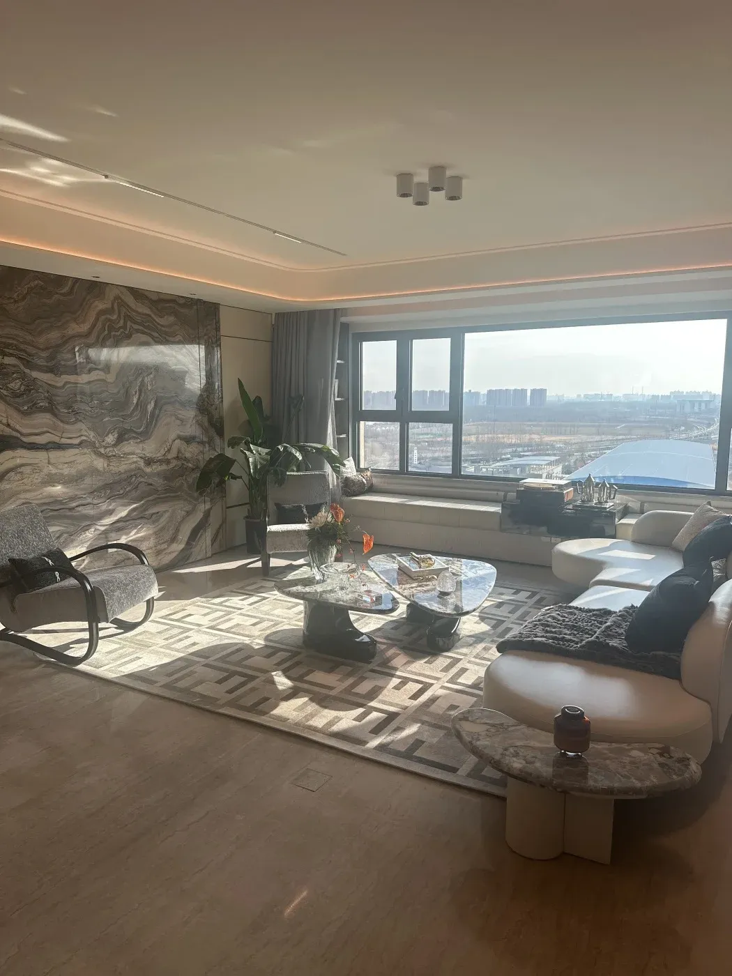 今天实地探访朝阳崔各庄的【绿城·晓风印月】!🏗️现场施工如火如荼,最新实拍图直出——米色外立面+玻璃幕墙的板楼群已初现雏形,30%绿化率的园林正在铺设🌳。作为央企开发的低密住宅(容积率仅2.5),项目主打「装修交付」和「改善优选」,2025年2月交房倒计时⏳!