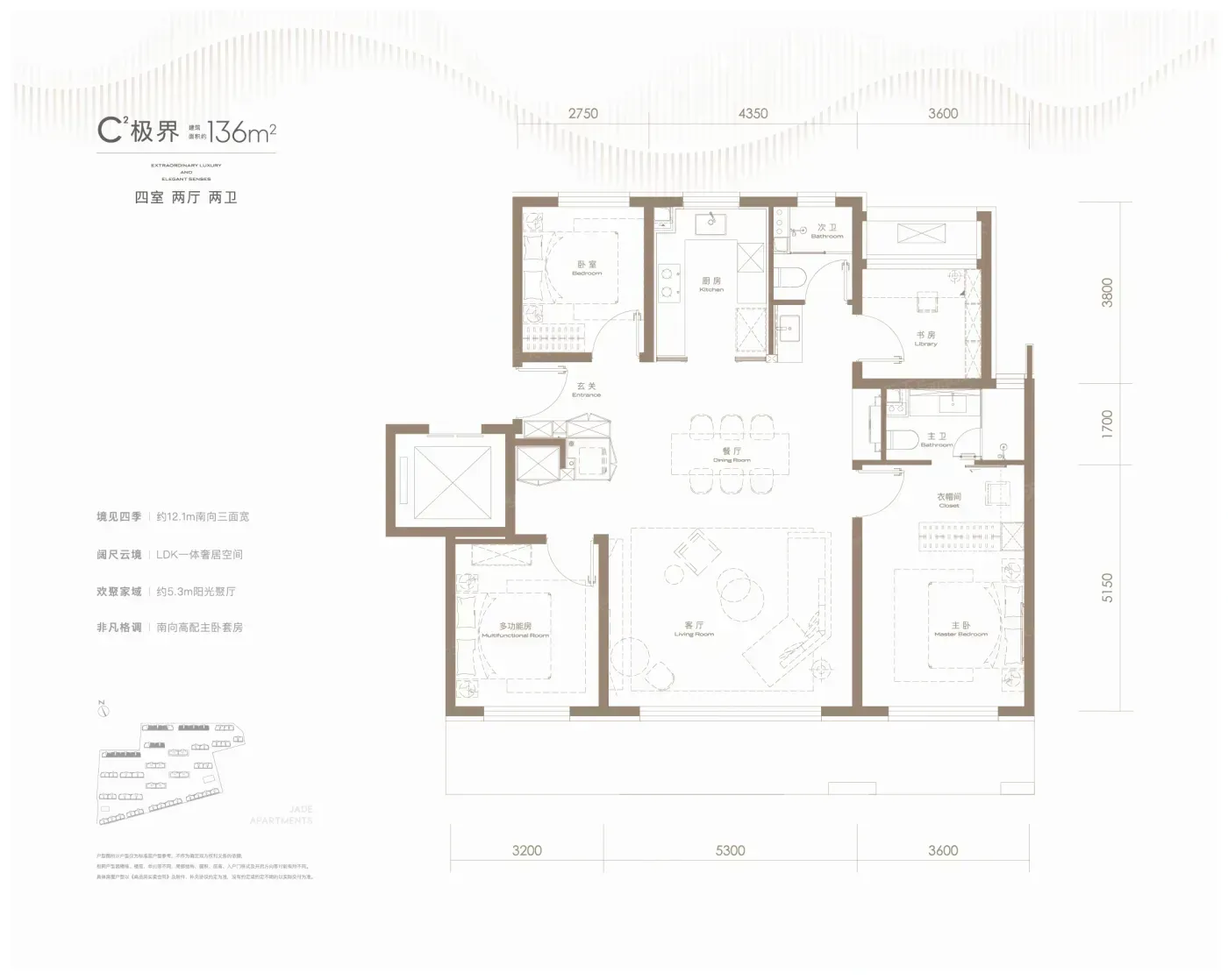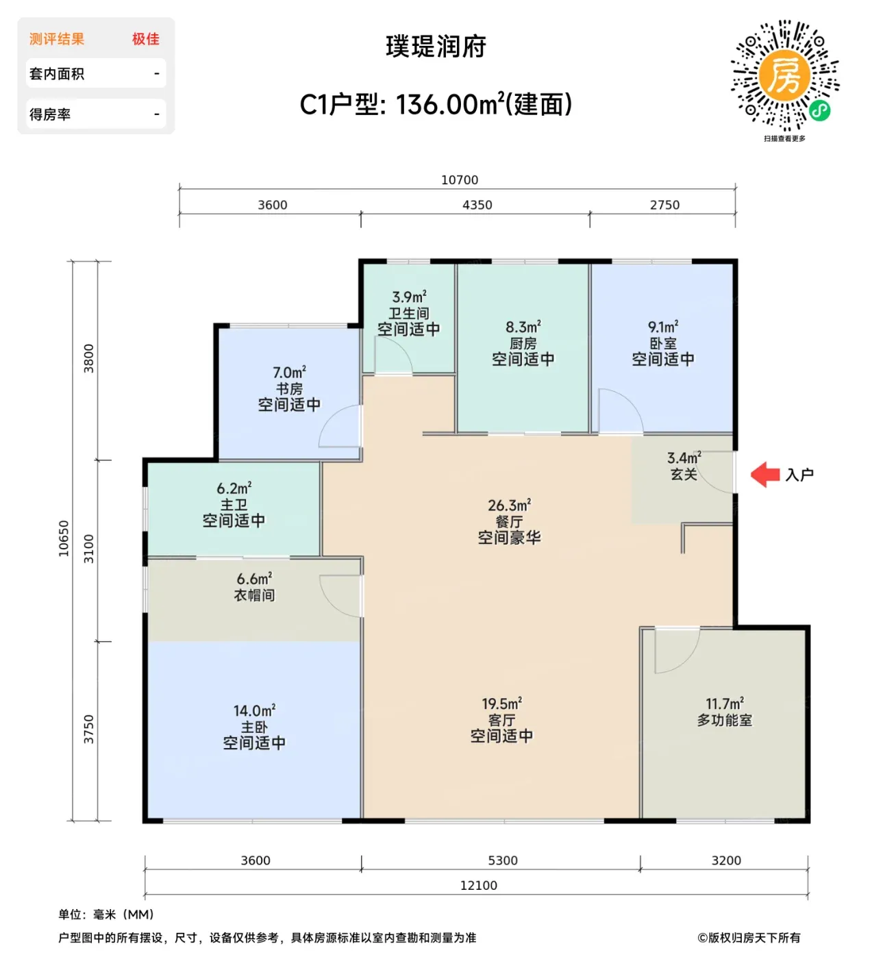 1️⃣全北京都少见的变态得房率!136平户型套内超105㎡,188平实得面积碾压市面上同类产品,相当于白赚一间阳光房