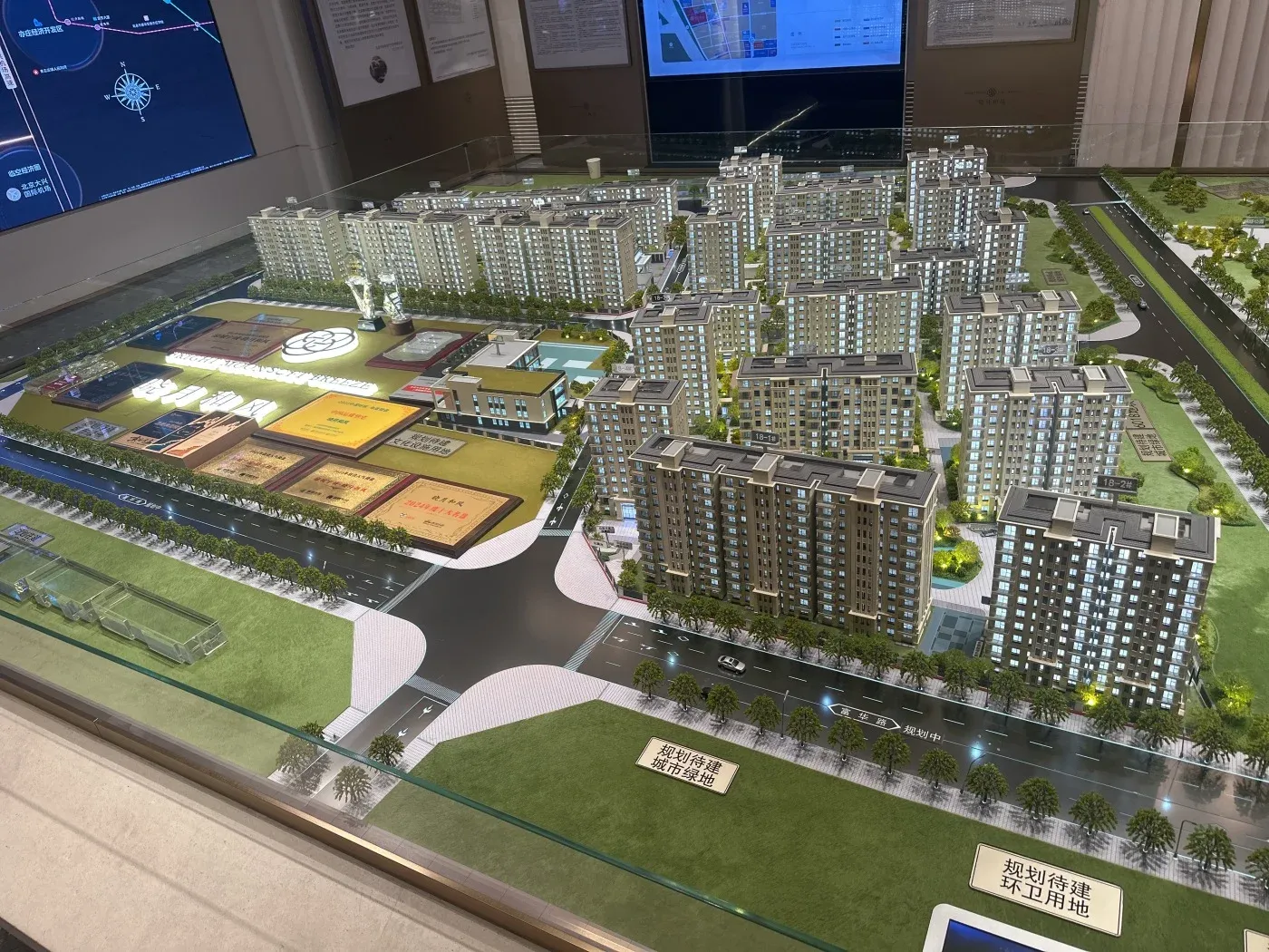 今天实地探访了绿城中国与宇诚集团联合开发的「晓月和风」🏗️,项目位于大兴区兴旺大街与三合路交汇处,属地铁沿线项目🚇。现场拍摄的实景图中,米色外立面搭配大面积玻璃窗,整体呈现现代简约风格✨。售楼处沙盘显示楼栋呈围合式布局,中央绿化带已初见雏形🌳。