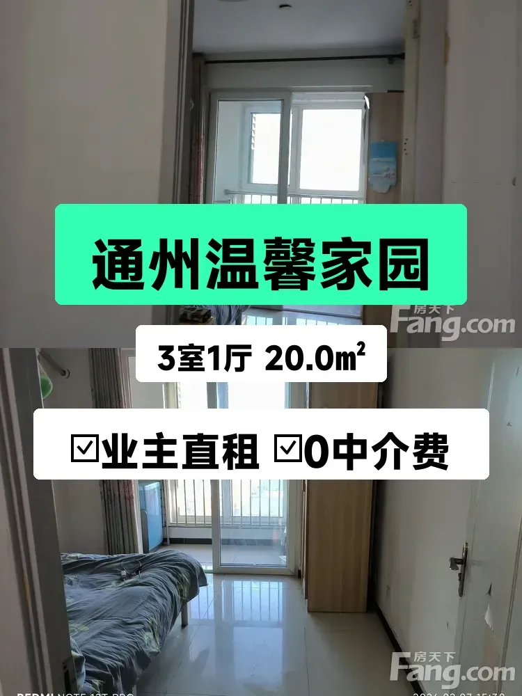 标题:自家精装主卧出租!通州温馨家园南向阳光房🌞