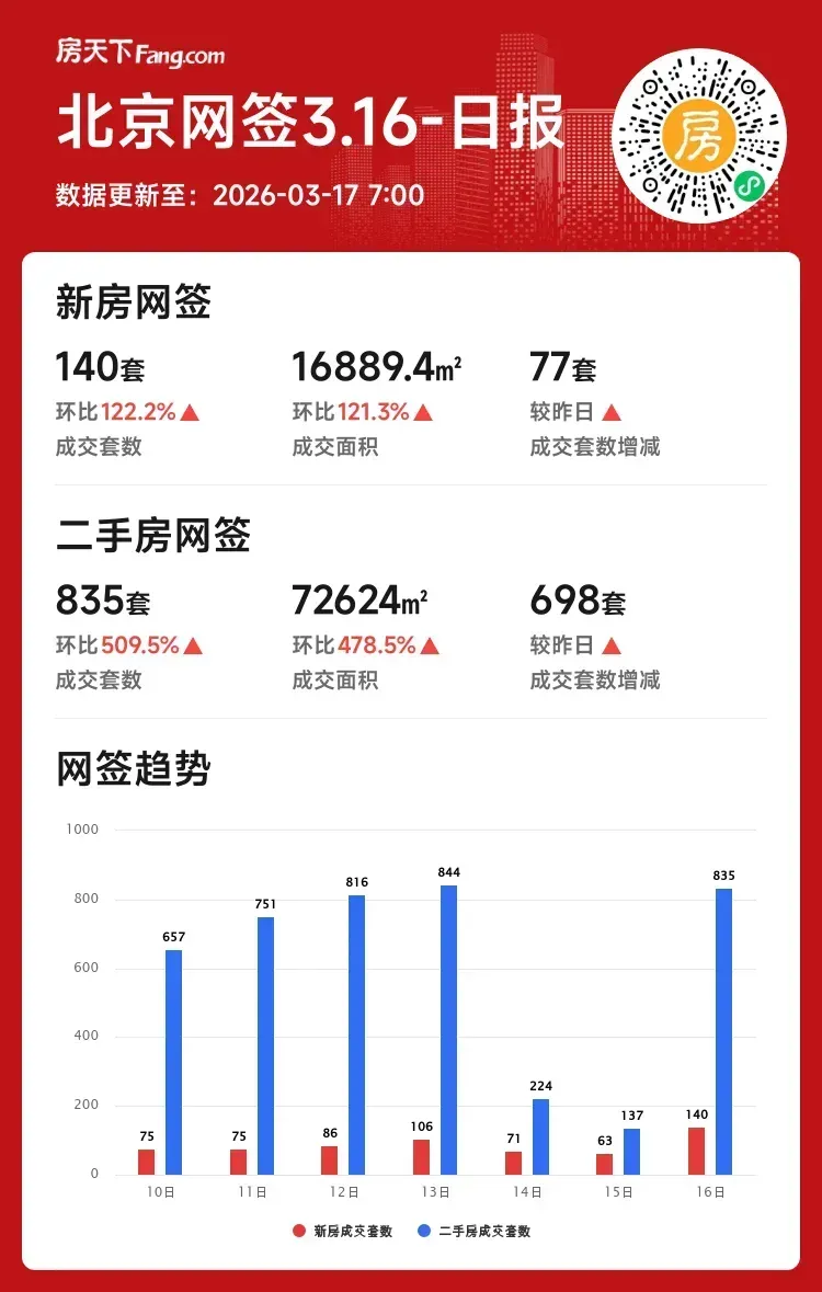 成交套数:140套 ↑122.2%(较昨日增77套)