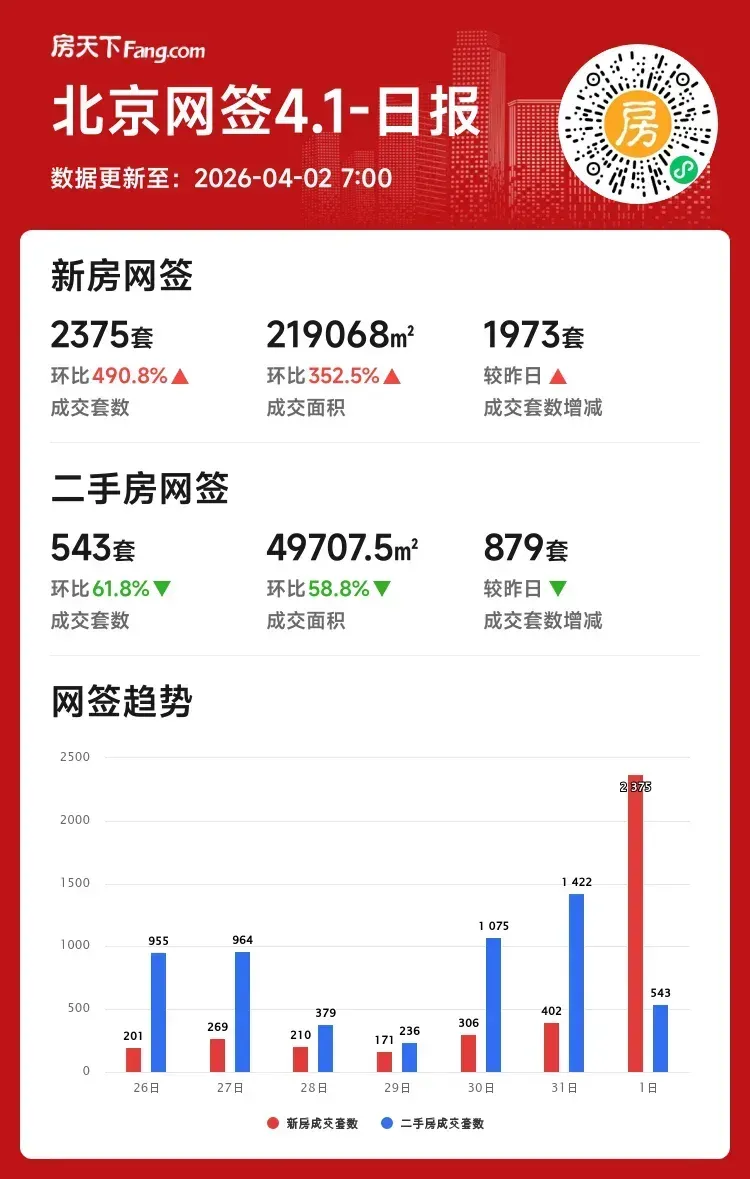 成交套数:2375套 ↑490.8%(较昨日增1973套)