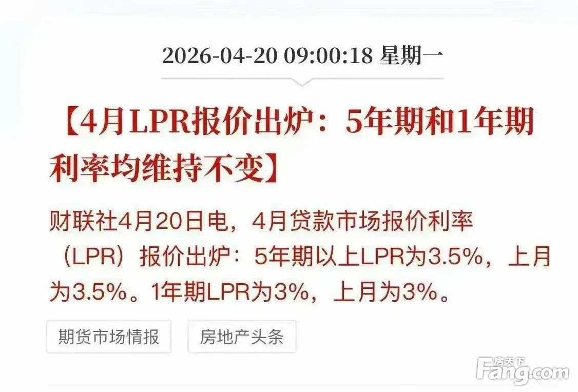 2026年4月份 LPR 较上月没有变化