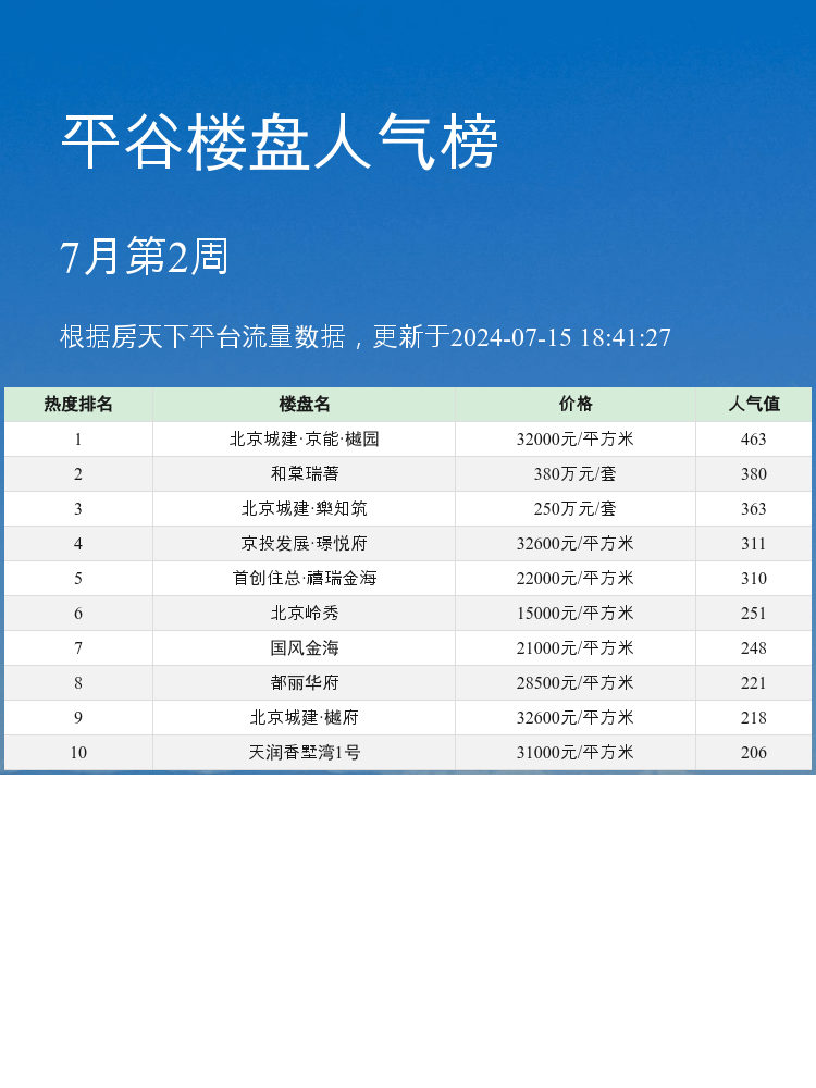 🌟 这就是平谷人气楼盘榜单前三名,每个楼盘都有独特的亮点和优势,希望对大家买房选房有所帮助!