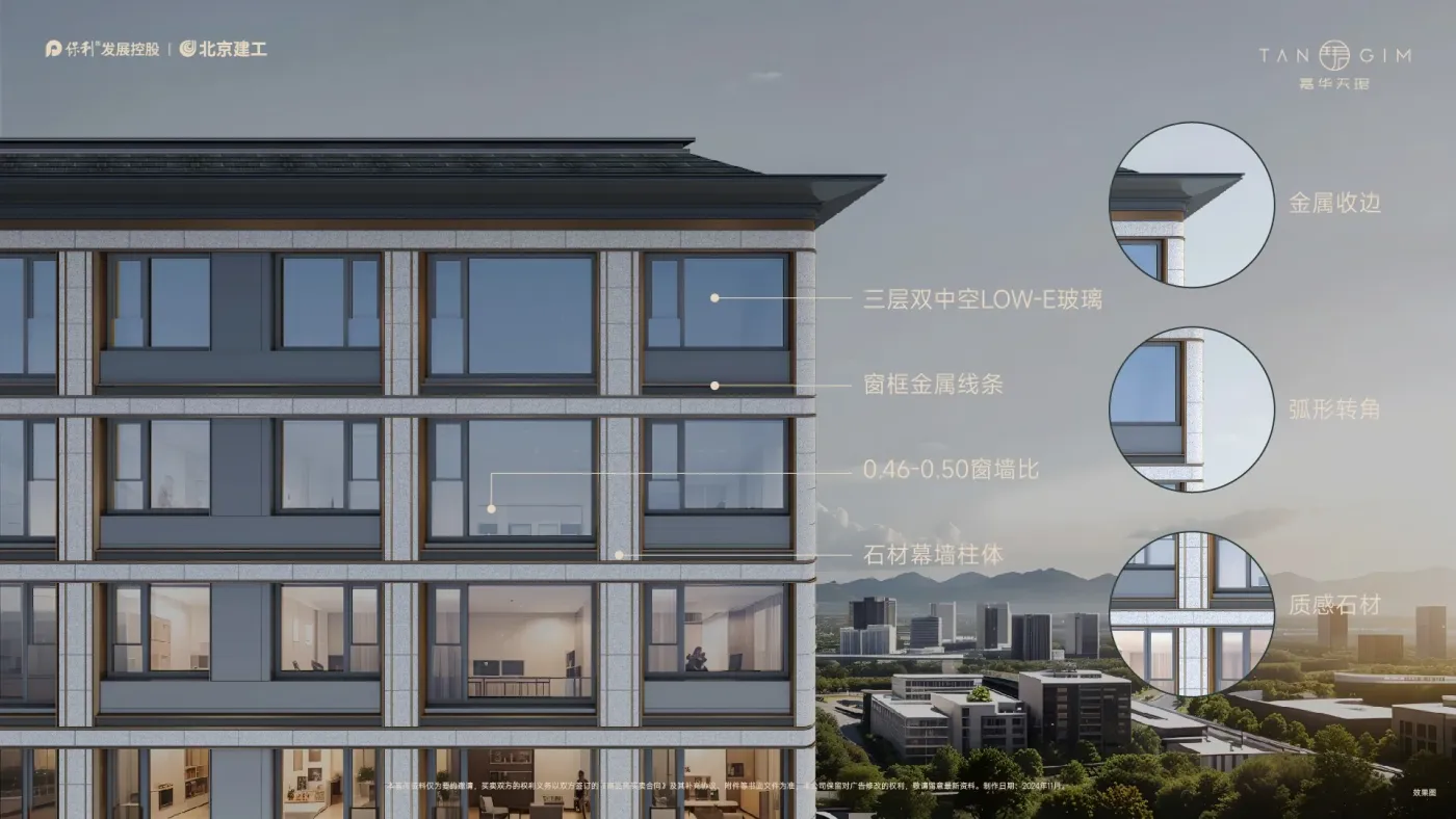 保利嘉华天珺,全石材立面,大面积玻璃,高窗墙比。气派门头(金玉华门+金玉满堂),细致园林,高品质呈现。打造区域标杆。