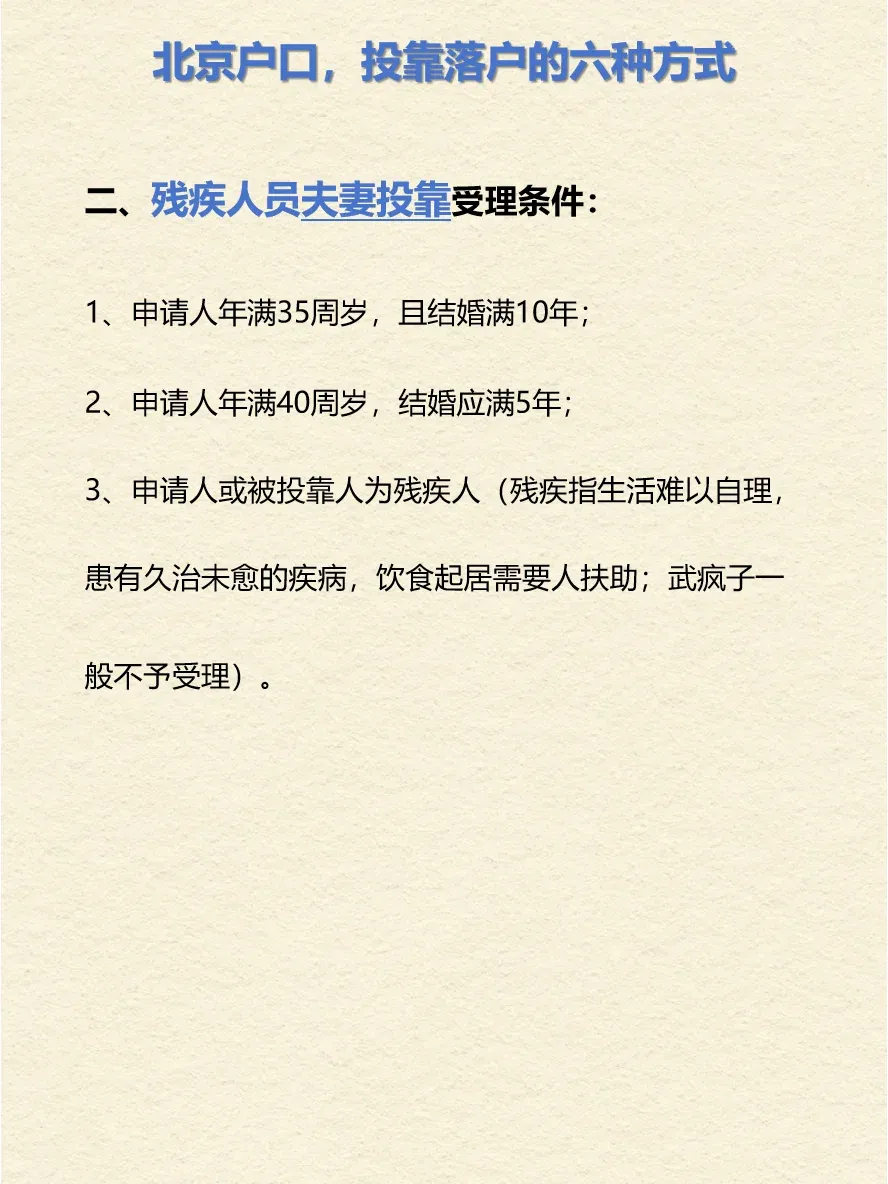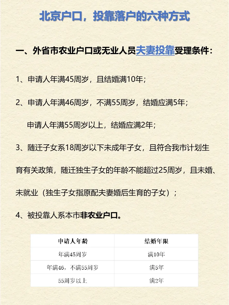 5、再婚人员投靠的,结婚时间、年龄参照夫妻投靠入非农业户条件办理。
