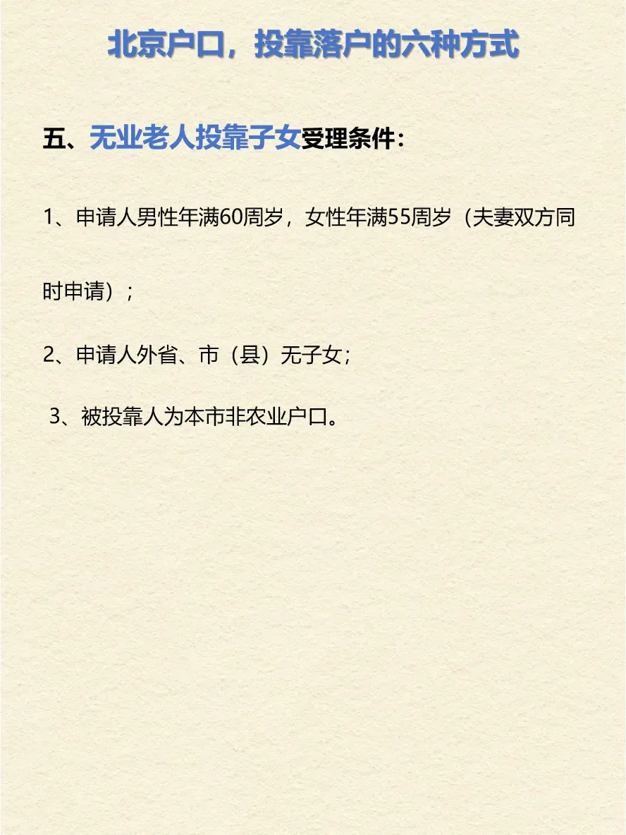 ✅四、离退休老人投靠子女: