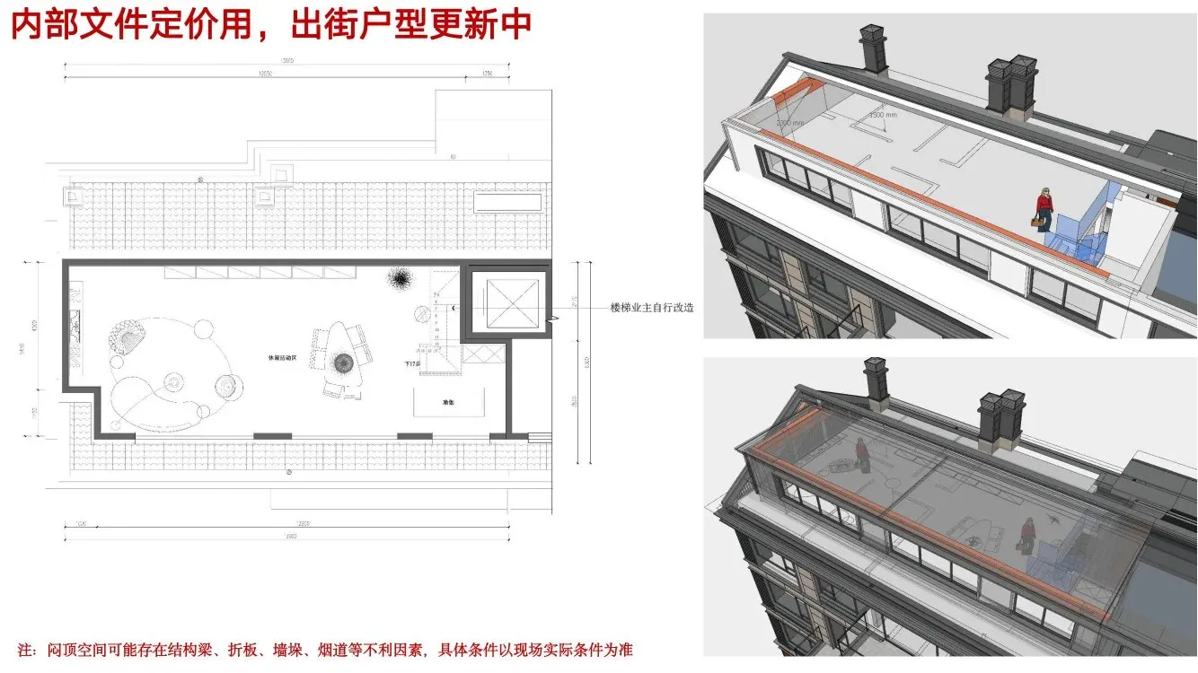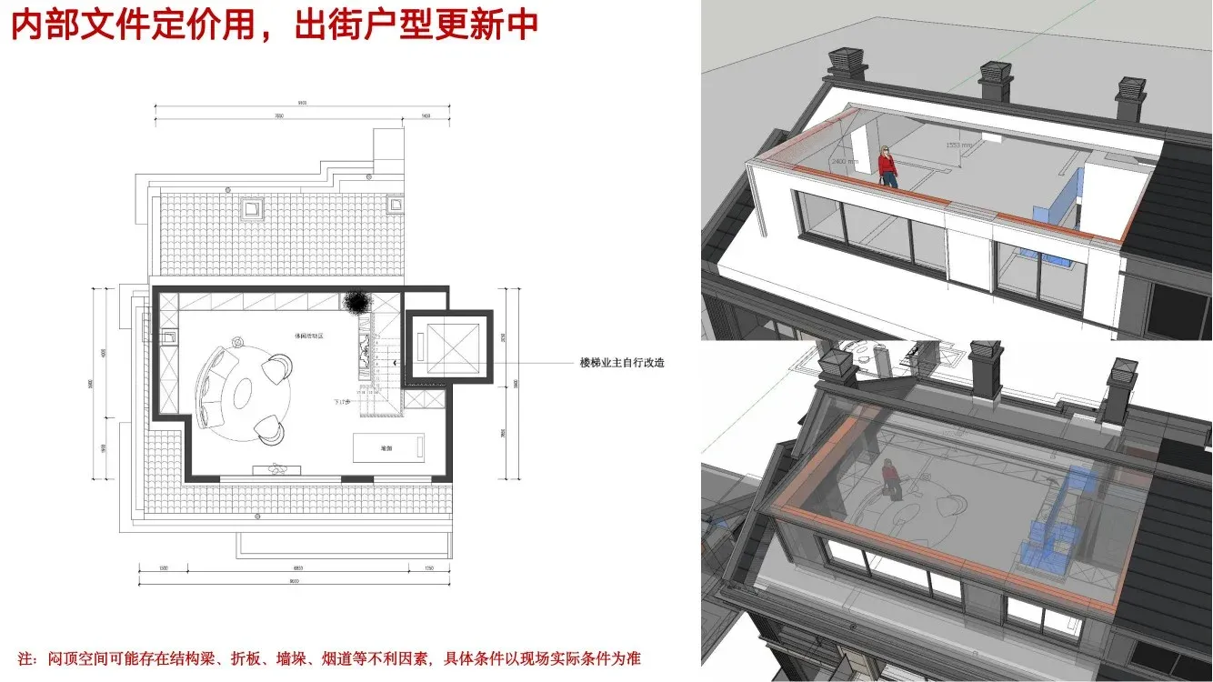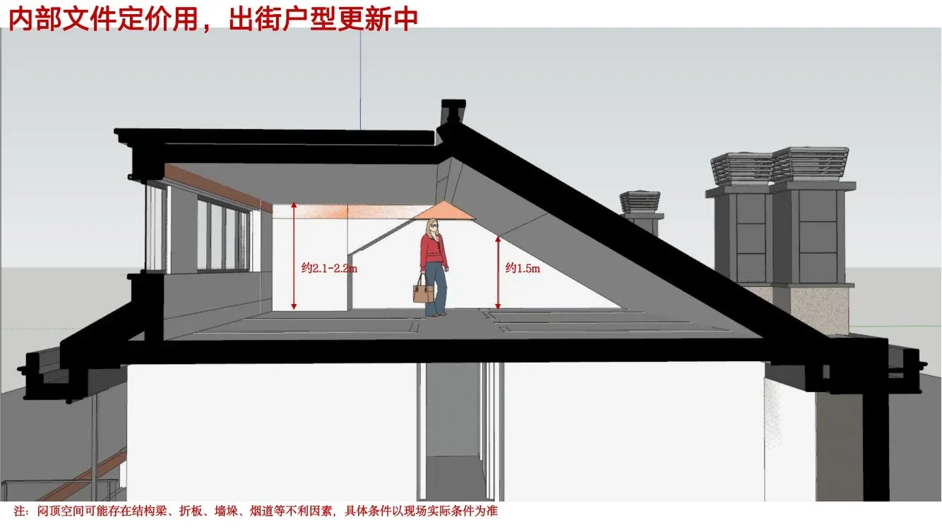 南侧平顶,北侧坡屋顶,105三居赠送阁楼50平