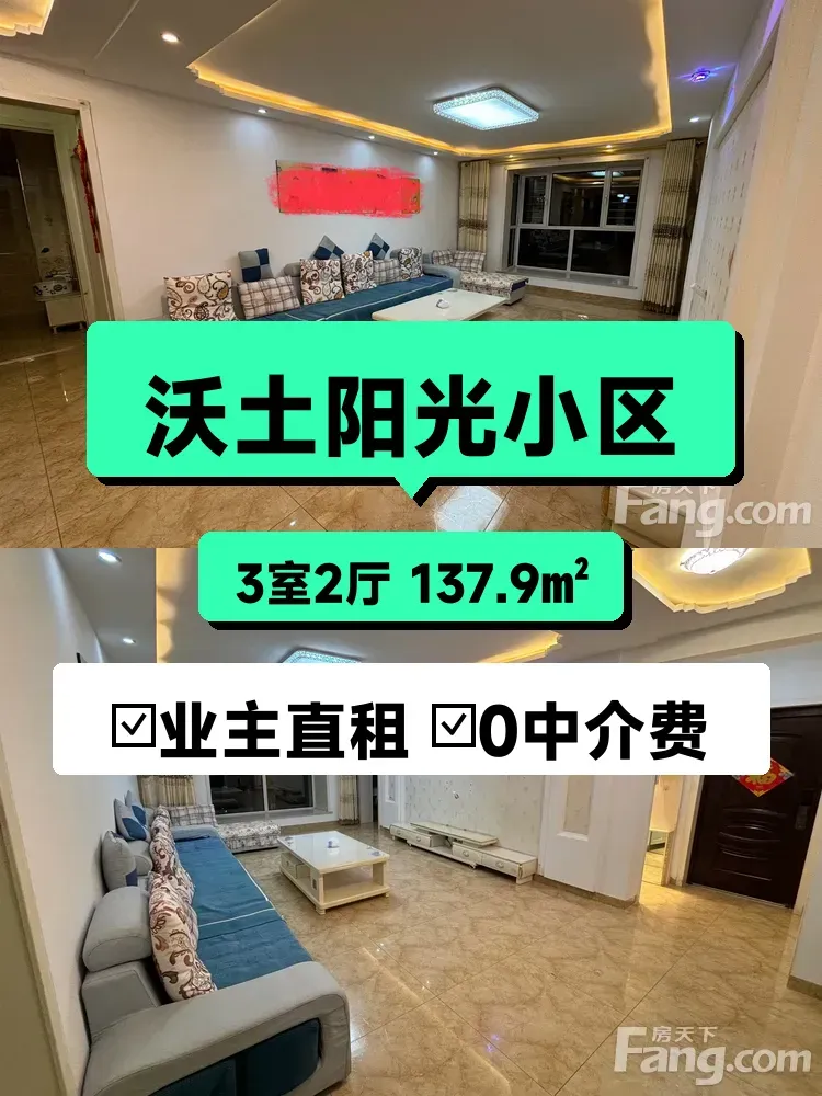 终于决定把自家在**沃土阳光小区**的房子租出去啦!✨ 这套房是我们一家人当初精心挑选的,**137.9㎡南北通透**的大三居,两厅两卫的格局超级实用,不管是家庭居住还是朋友合租都绰绰有余~
