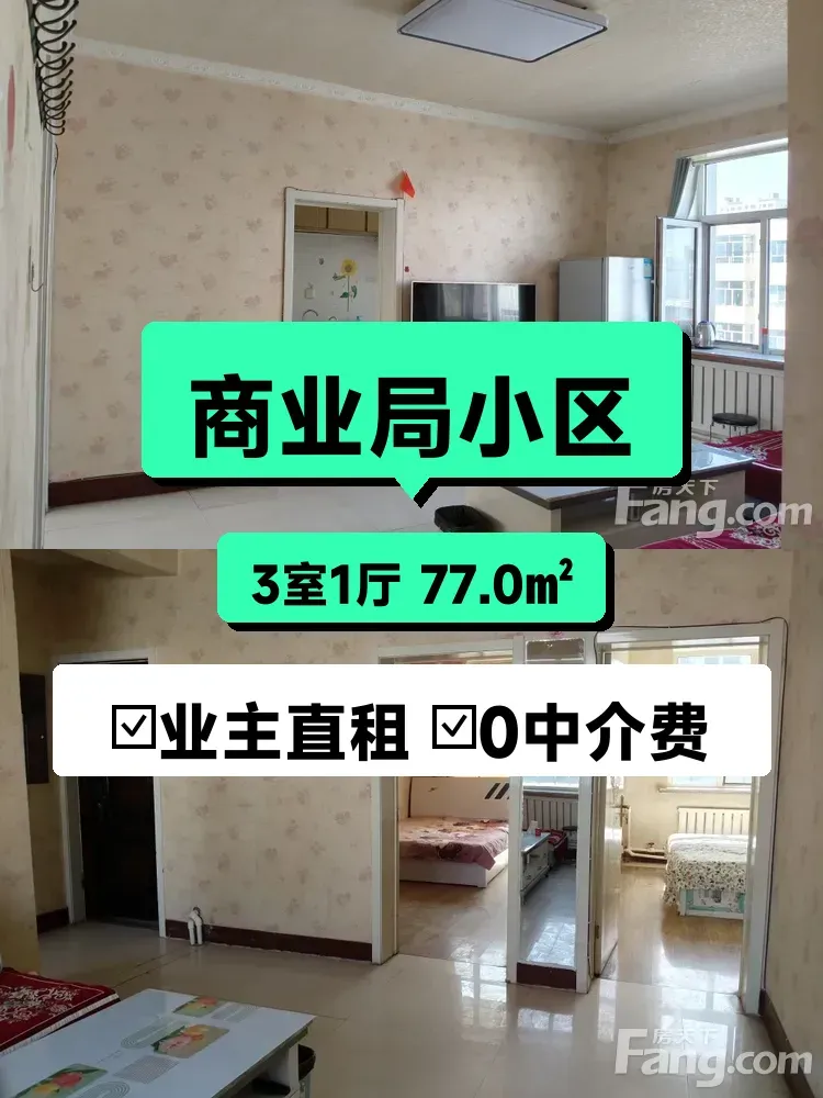 标题:自家南向三居室出租,77平666元/月,随时入住🏠