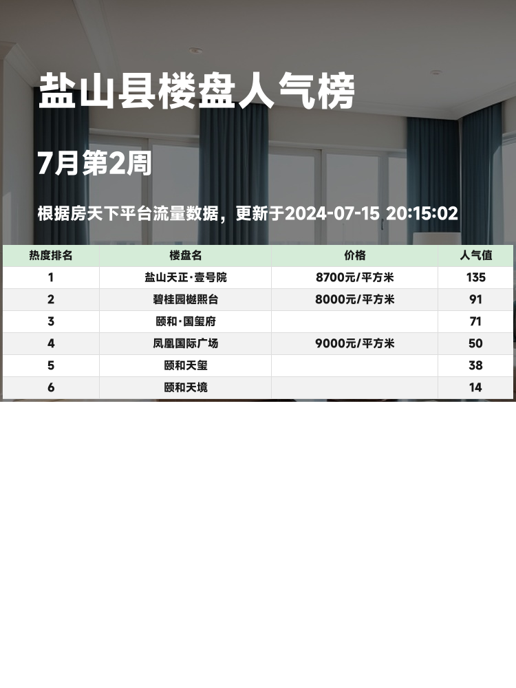 在当前市场中,选好房子至关重要🏘️。人气楼盘榜单为购房者提供了宝贵的参考信息✨,不仅有助于了解市场趋势,还能帮助大家避开一些潜在的购房雷区⚠️。接下来,让我们一起来看看盐山县人气楼盘榜单中的前3名楼盘🏅。
