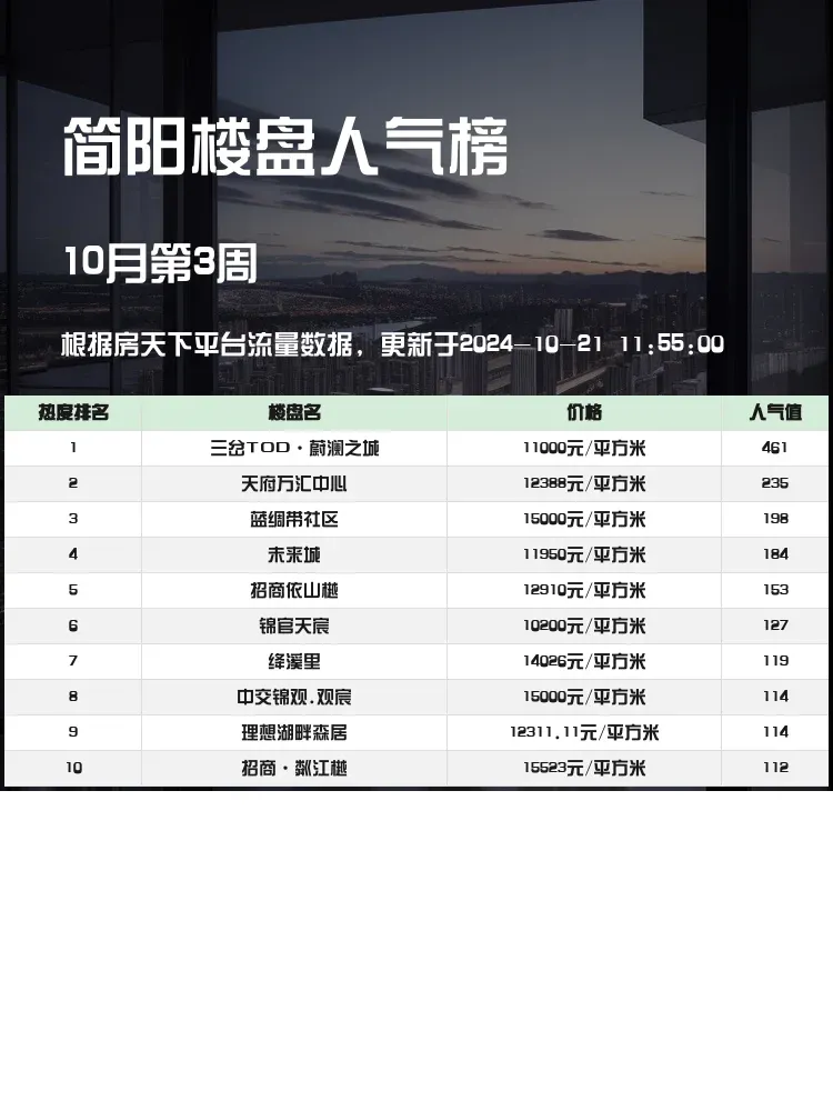 🏡在房产市场中,了解人气楼盘榜单对购房者至关重要!通过这些榜单,我们能够准确掌握区域内楼盘的受欢迎程度,为自己的购房决策提供重要参考依据。在当前市场,选房买房时不仅要看位置和价格,还要综合考虑生活配套、交通便利性以及未来升值潜力等因素。🎯