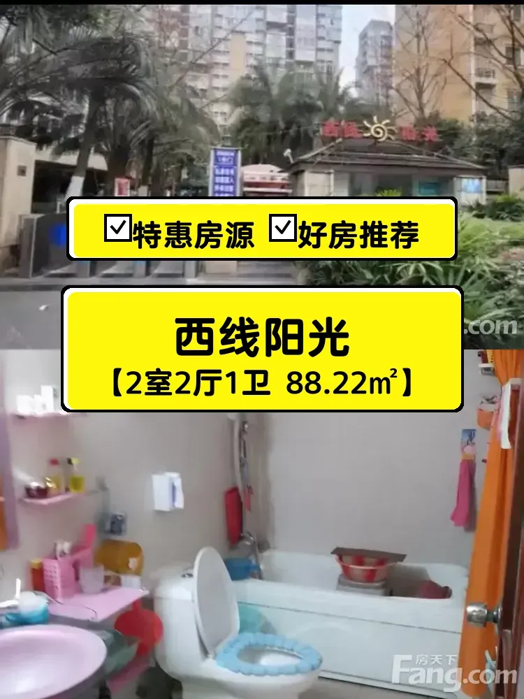 我家在西线阳光小区,位置超棒!黄金路9号出门就是地铁站,步行5分钟到万象城商圈,吃喝玩乐超方便~房子是2007年建的,但保养得特别好,88平的两室两厅,户型宽敞,特别适合小家庭或者情侣住。