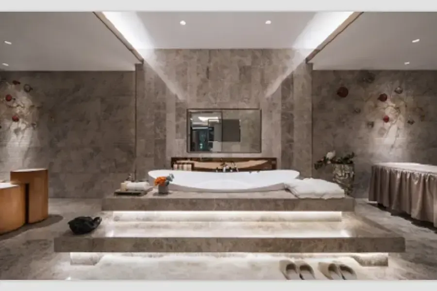 实测发现淋浴区墙面用了新型透光混凝土,白天当采光井晚上变星空顶,这哪是卫生间?分明是光影艺术馆!