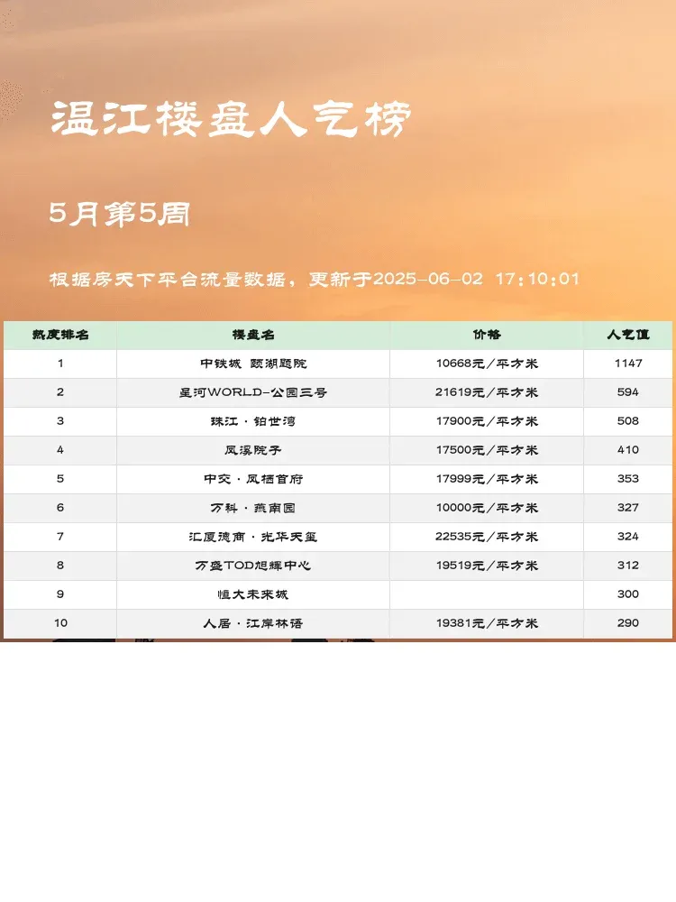 买房选房看榜单准没错!🔥 当前市场下,购房者更关注性价比+配套+未来潜力三大核心要素。这份温江人气楼盘榜单真实反映市场热度,帮你快速锁定优质房源,避免踩坑~ 一起来看看前三名都有哪些亮点吧!
