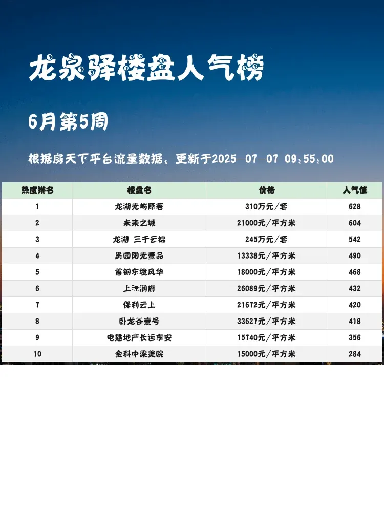 买房选对区域很重要,但选对楼盘更重要!🏡 这份龙泉驿人气楼盘榜单,帮你快速锁定热门楼盘,避开踩雷风险💣 当前市场下,购房者更看重交通便利性、户型实用性和教育资源配套,这份榜单正是围绕这些核心需求评选出来的✨