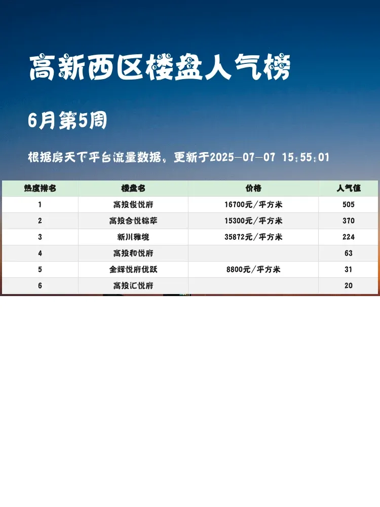 买房选对区域很重要,但选对楼盘更重要!🏡 这份高新西区人气楼盘榜单,帮你快速锁定区域热门选手~当前市场下,核心逻辑就是:既要配套成熟度,又要价格合理性,还得看未来潜力!这份榜单给你最真实的参考👇