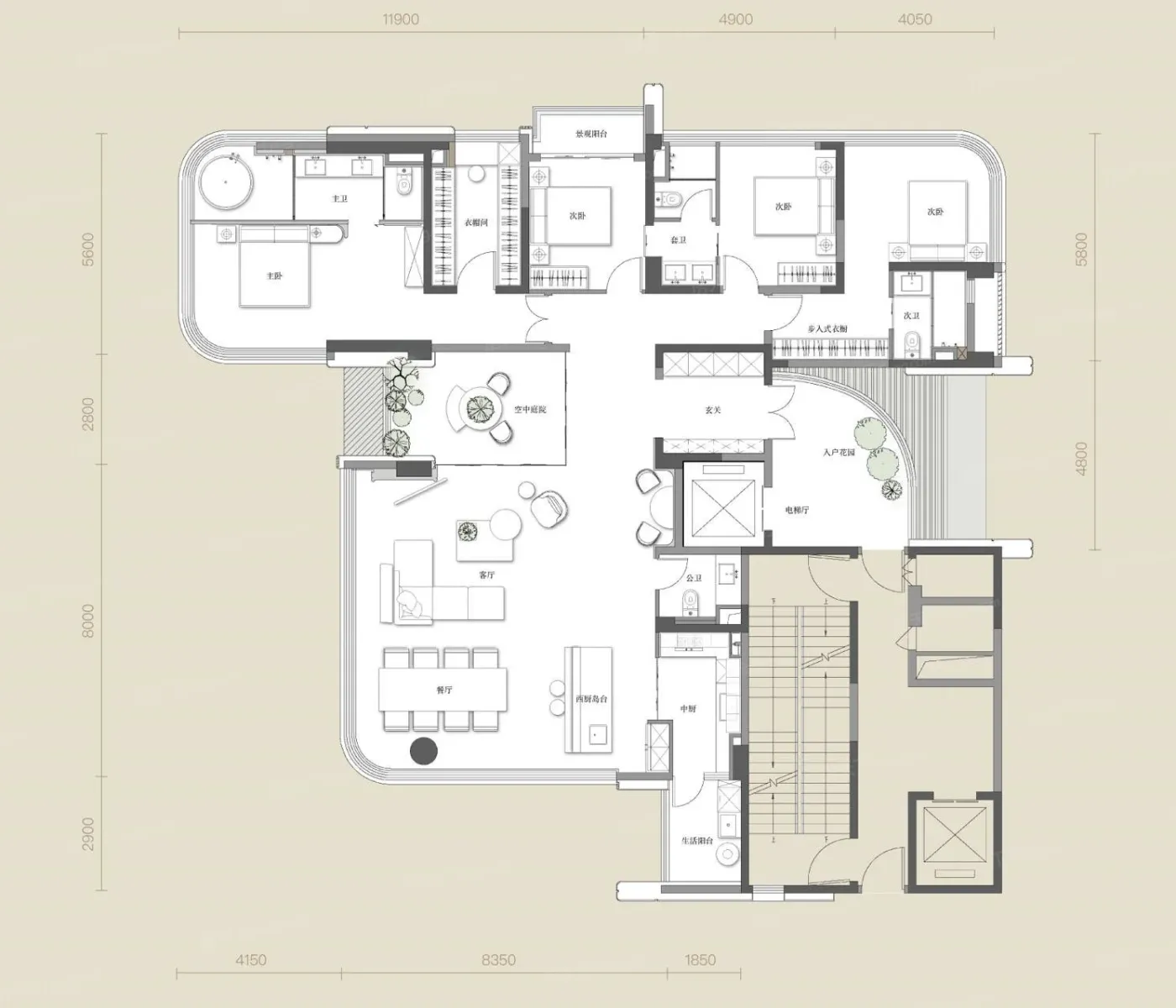项目最惊艳的是「叠术设计」:3.6米层高客厅外接7米长观景阳台,落地窗将锦江风光框成巨幅油画。样板间玄关处的透光玉石屏风,晴天时会在地面投射出芙蓉花纹,这种藏在细节里的在地文化表达,让看过20+豪宅的朋友都直呼内行。